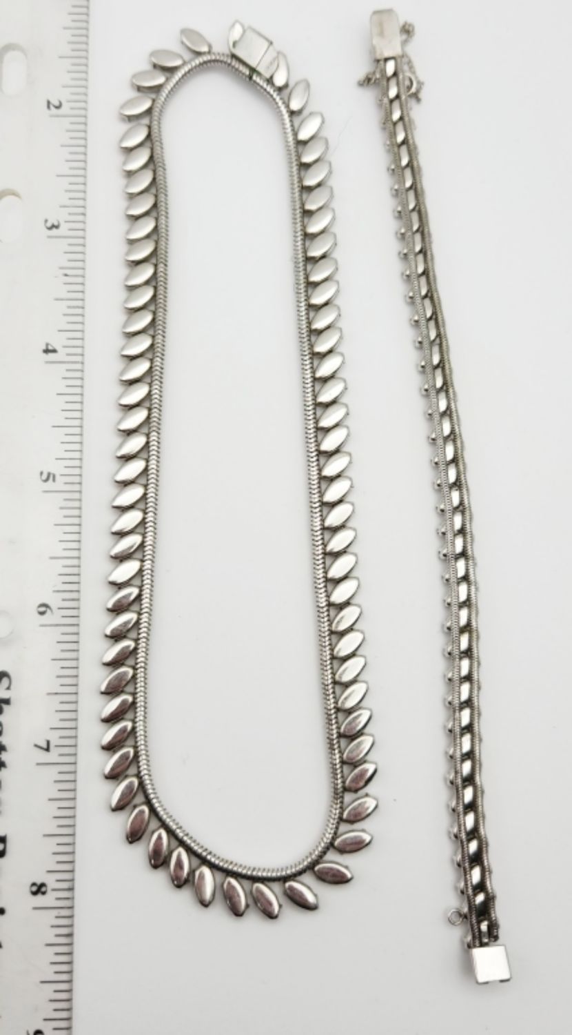 NECKLACE WITH MATCHING BRACELET-NECKLACE MEASURES 14.5 INCHES AND BRACELET MEASURES 7.5 INCHES