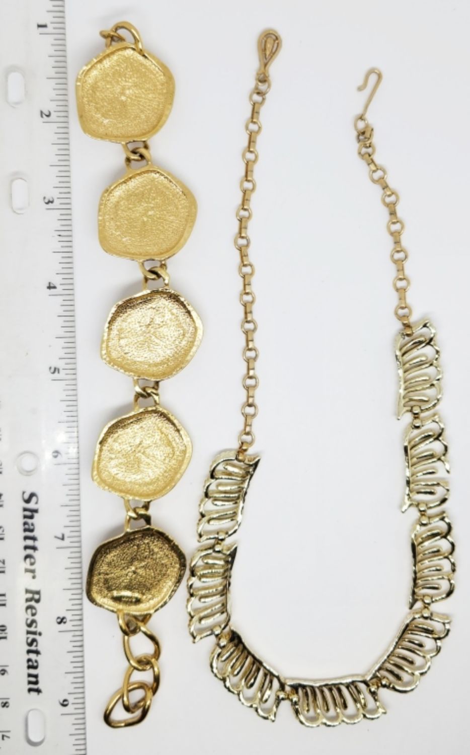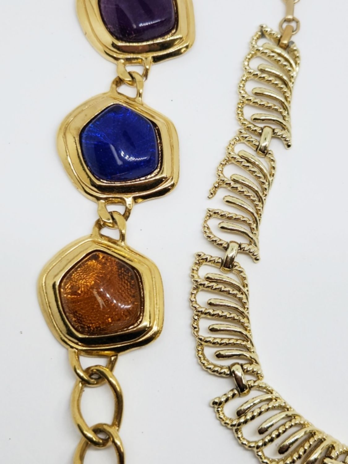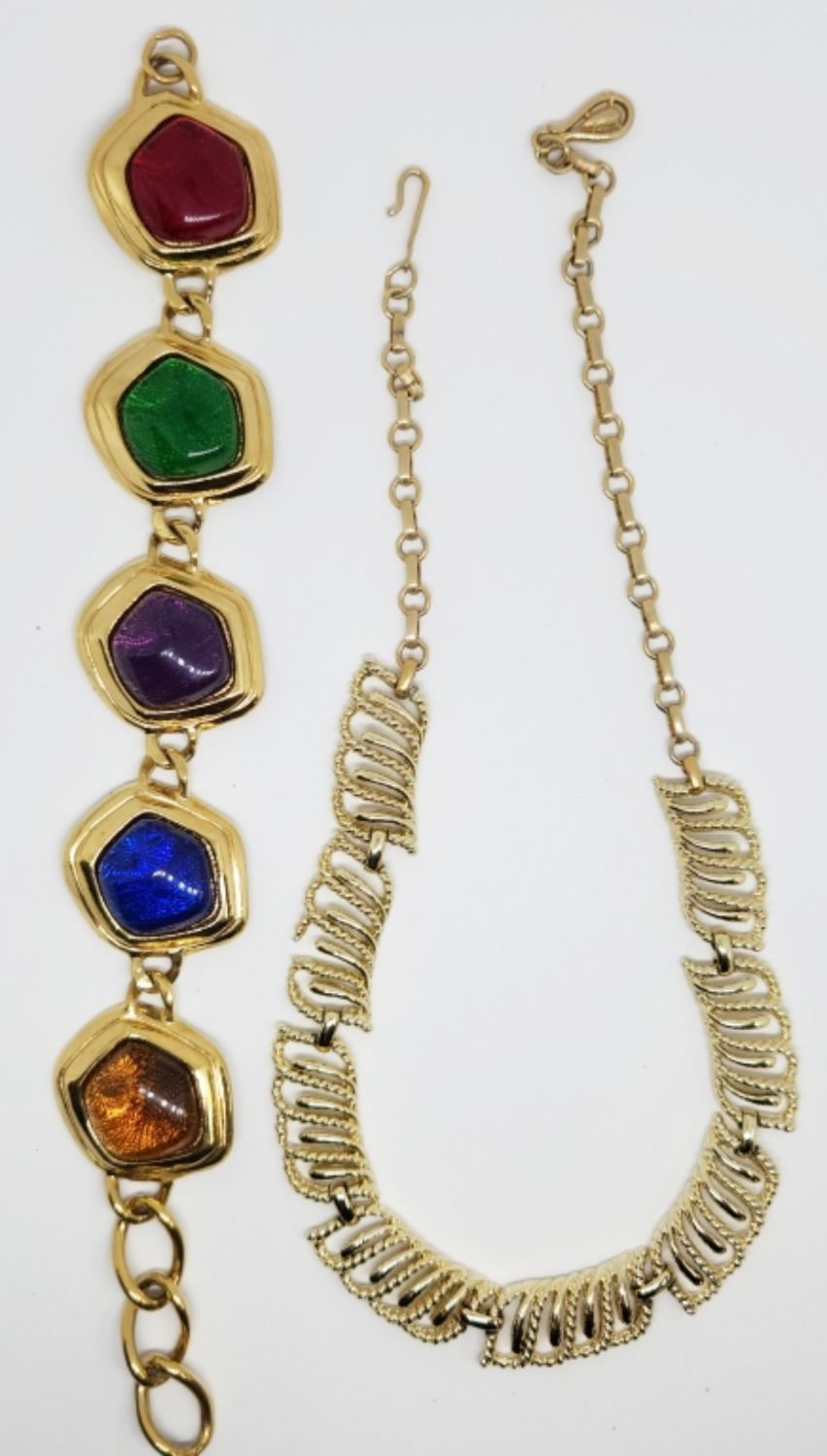PANEL NECKLACE MEASURES 17 INCHES & (1)AVON PANEL BRACELET WITH MULTI COLORED LUCITE MEASURES 8.5 INCHES