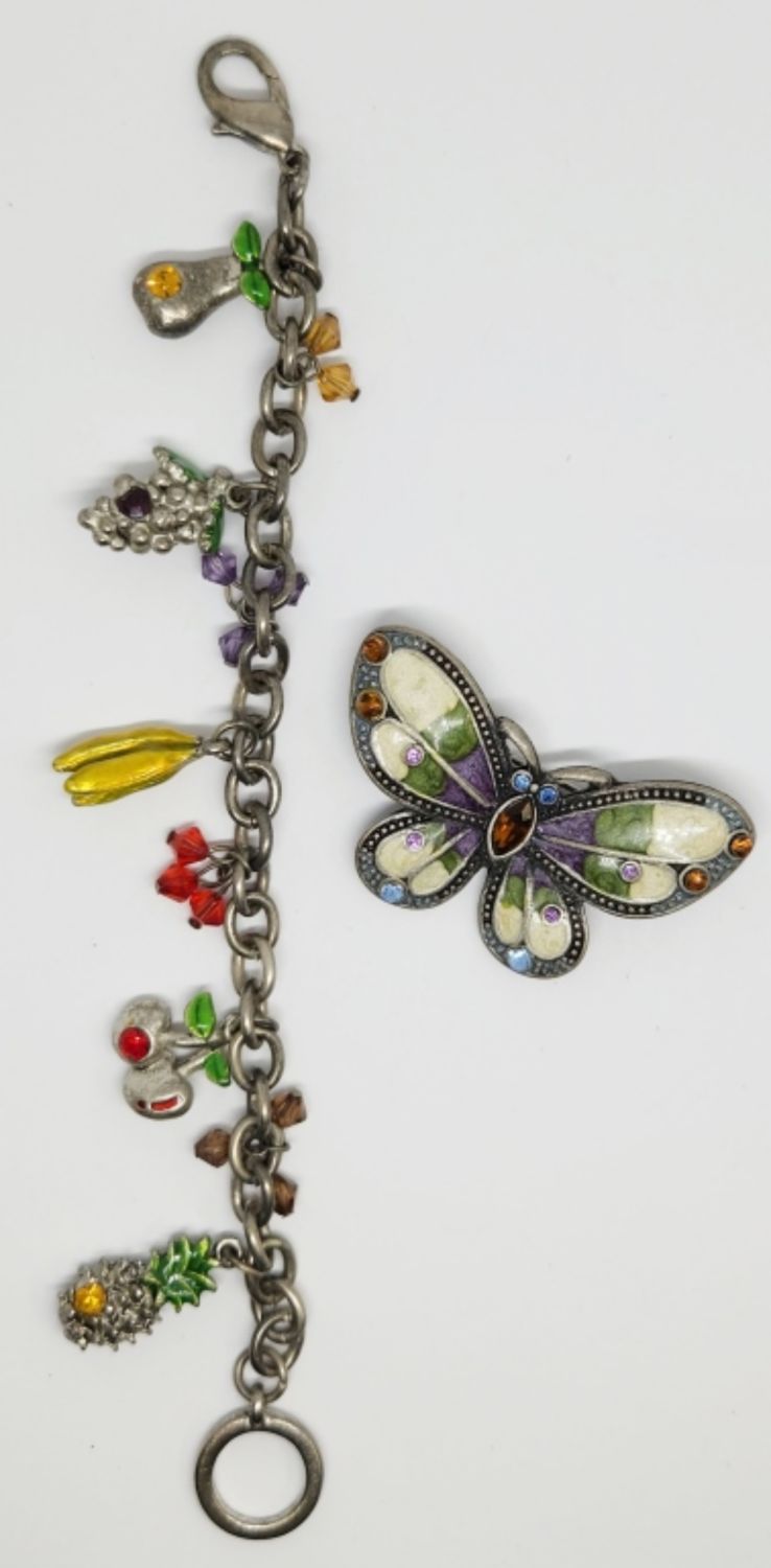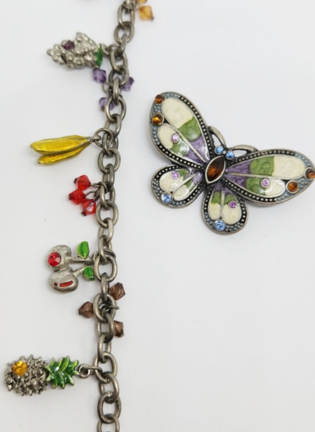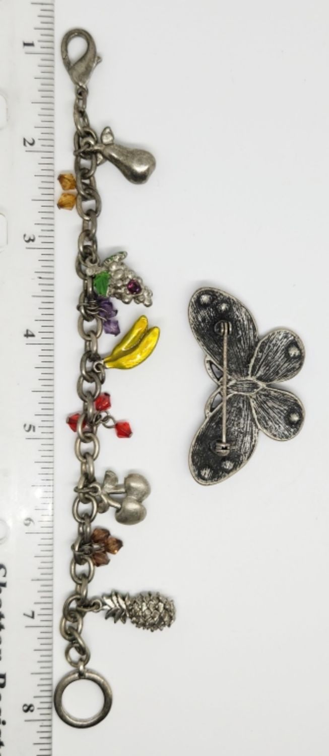BROOCH PLUS BONUS LINKED FRUIT CHARM BRACELET