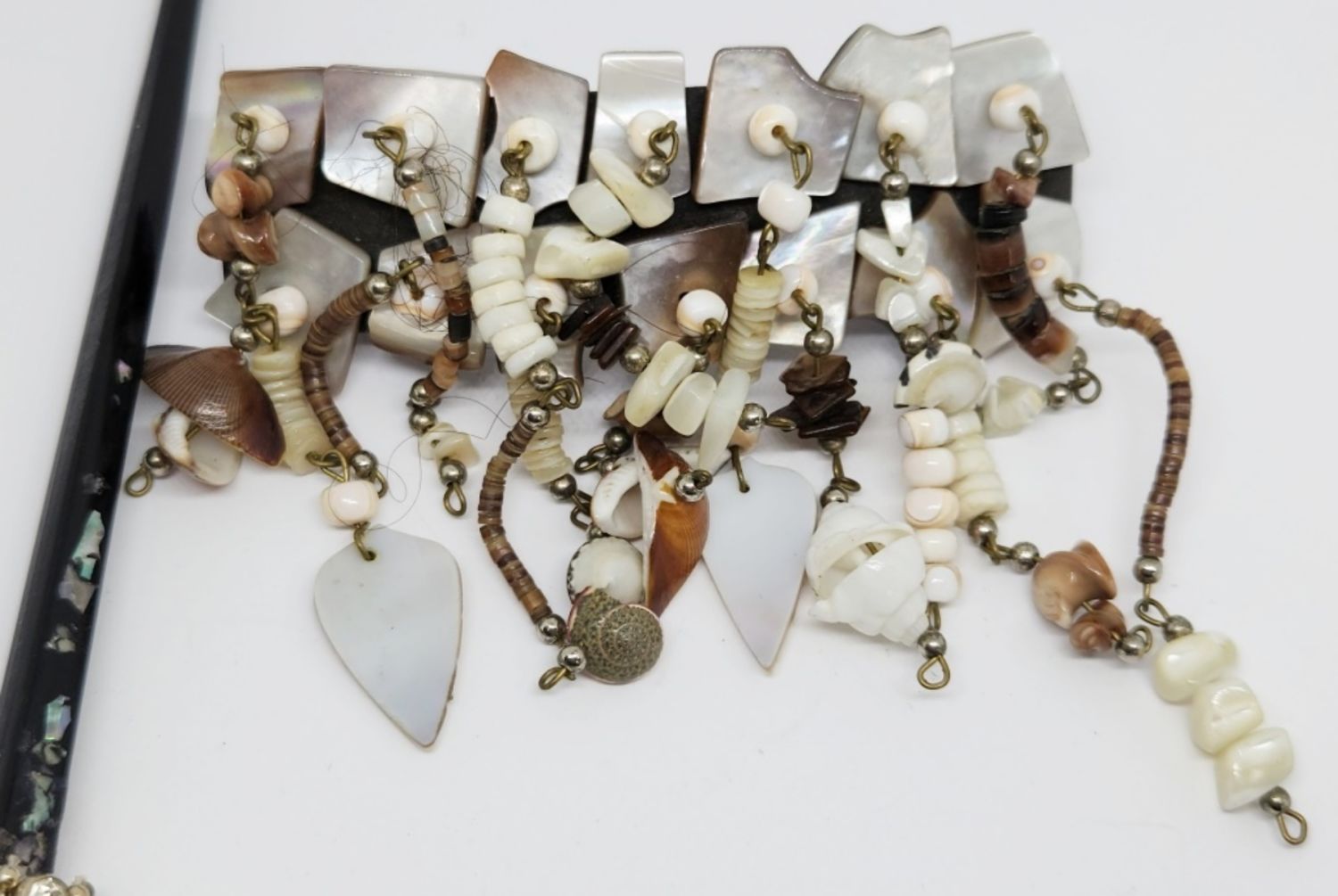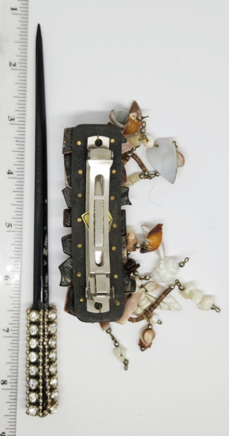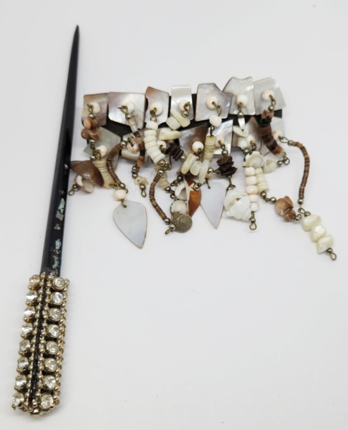 SHELL/BEADED ACCENTS (GREAT FOR BEACH!) (1)RHINESTONE HAIR PIN WITH ABILONE INLAY