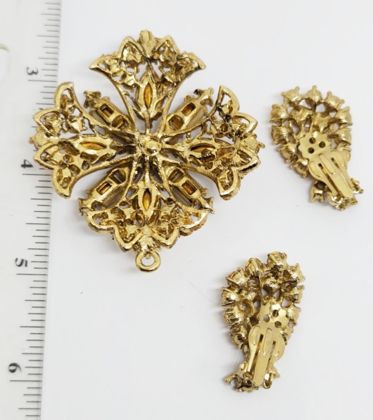 RHINESTONE PENDANT WITH MATCHING PAIR OF CLIP ON EARRINGS