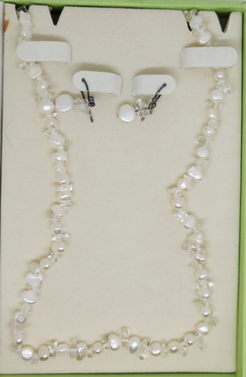 AND CULTURED PEARL NECKLACE WITH MATCHING PAIR OF PIERCED DANGLY EARRINGS