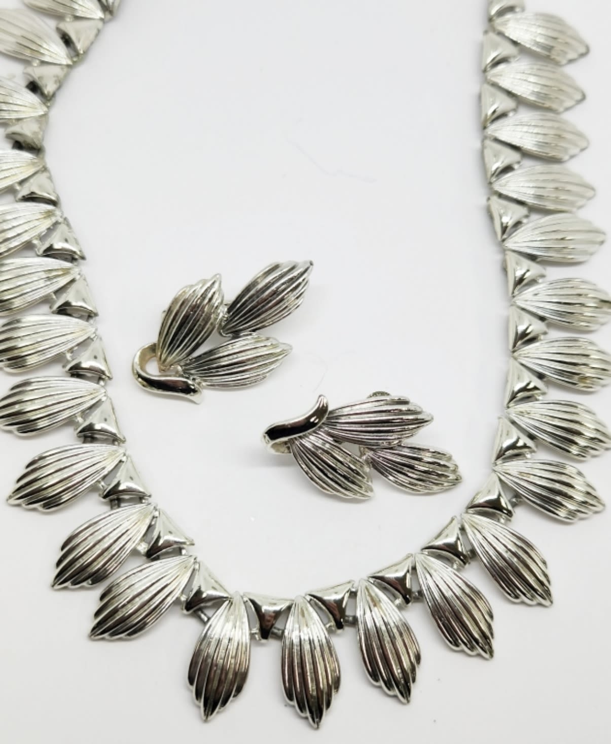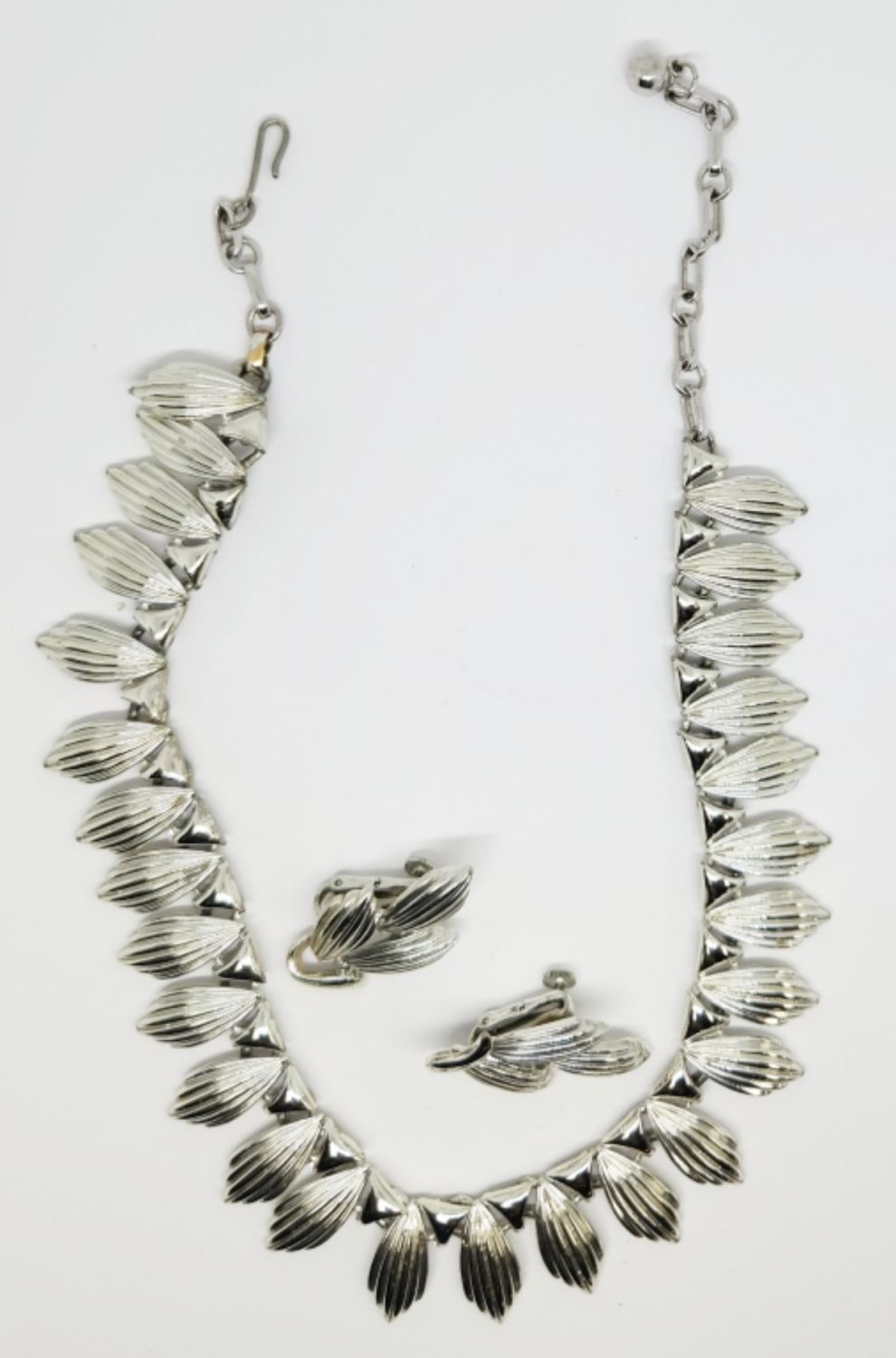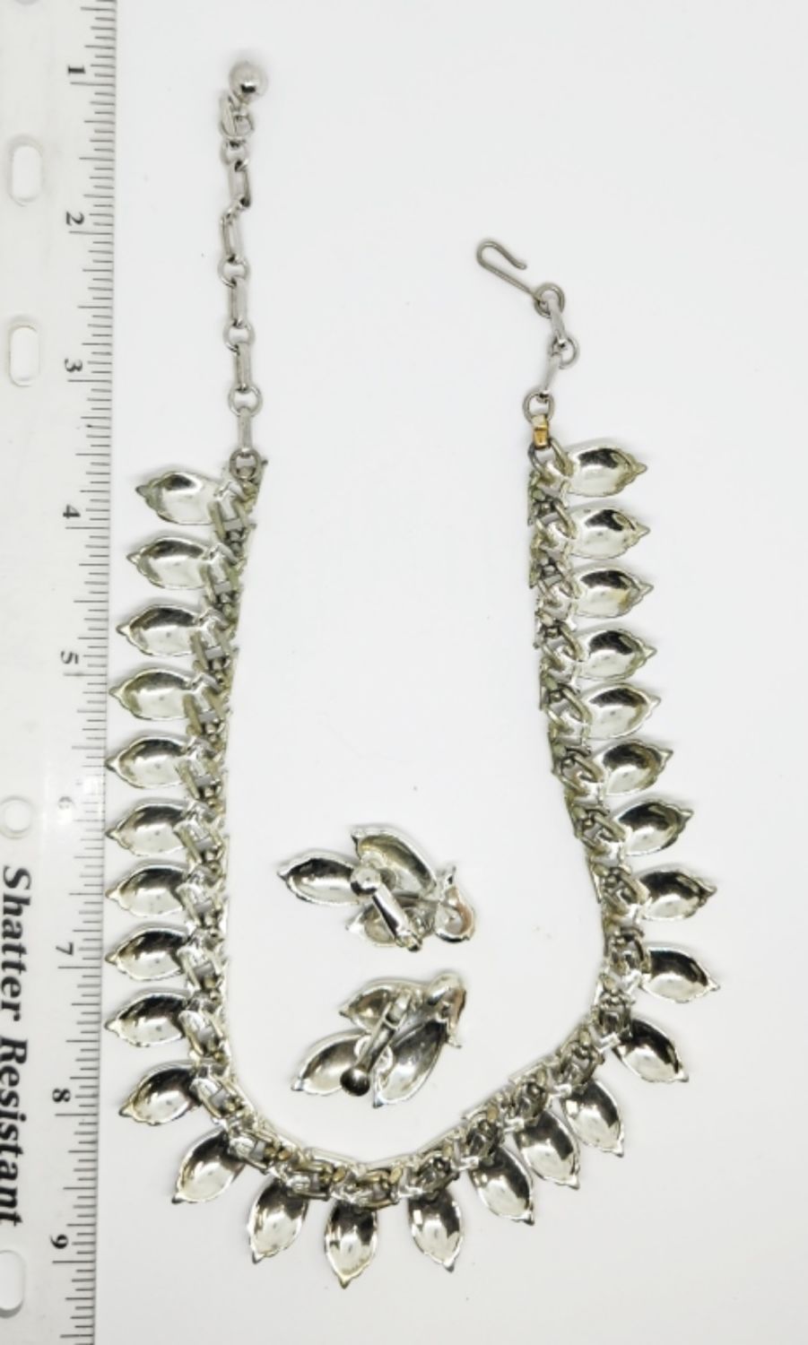 WITH MATCHING PAIR OF CLIP ON EARRINGS-NECKLACE MEASURES 16.5 INCHES