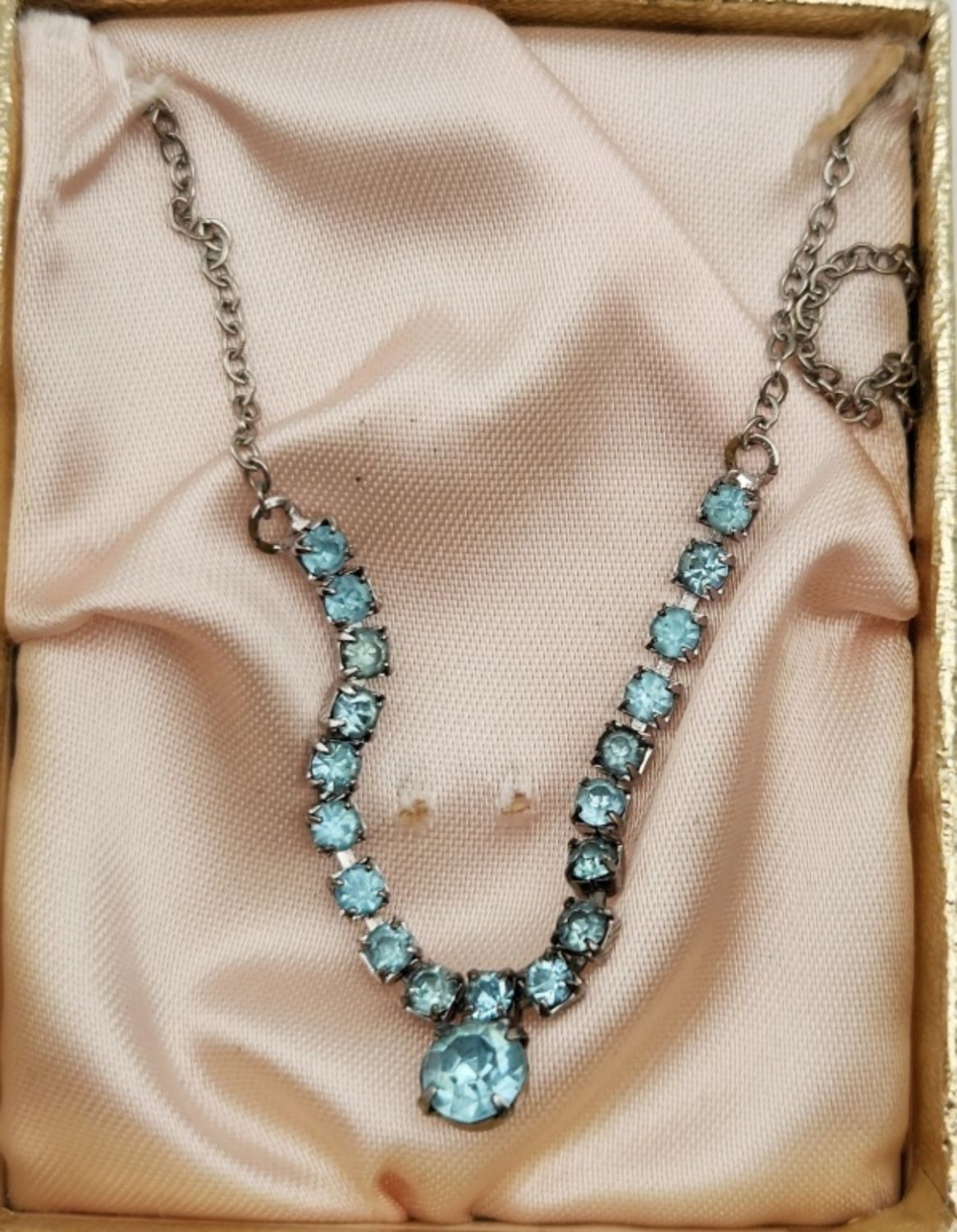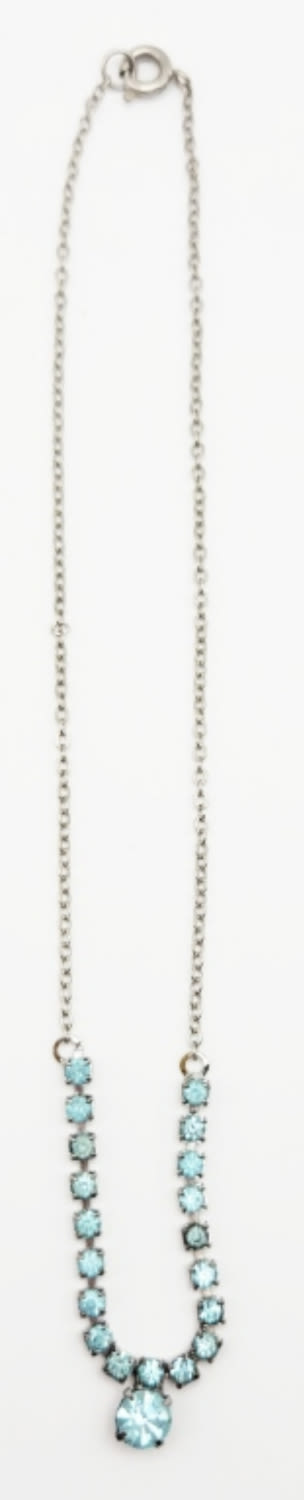 BLUE RHINESTONE NECKLACE-MEASURES 14 INCES