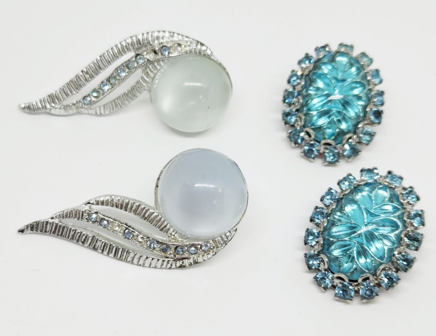 WITH BABY BLUE TRANSLUCENT LUCITE AND RHINESTONES & (1)PAIR OF CLIP ON WITH BABY BLUE LUCITE AND RHINESTONE ACCENTS