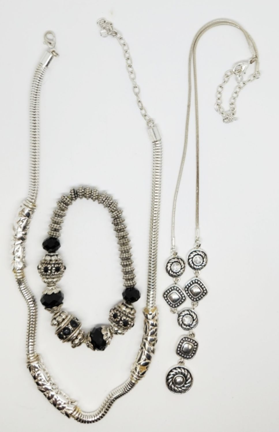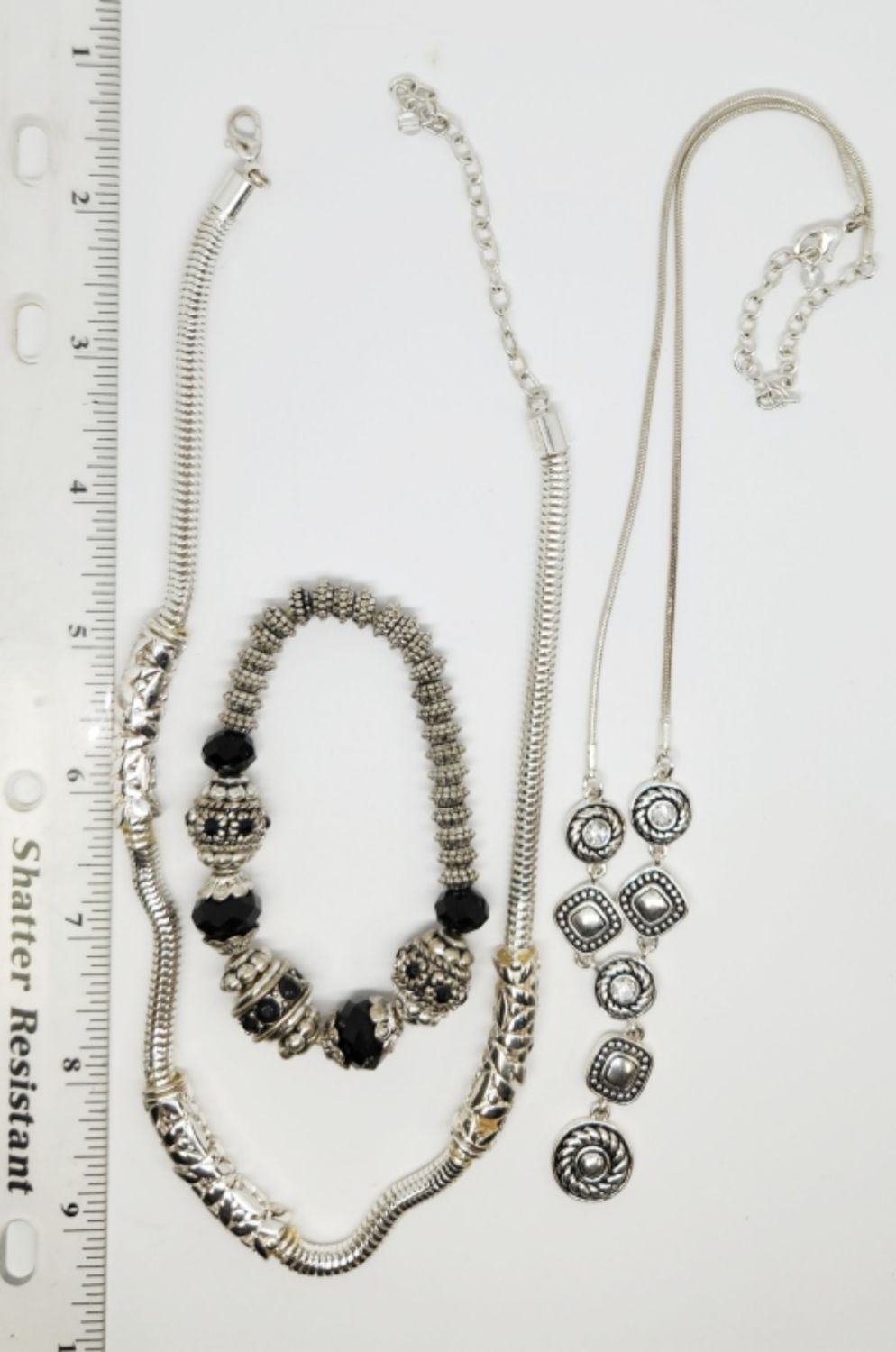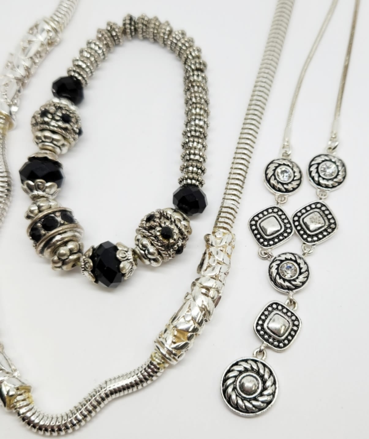 AND (1)BRACELET WITH BLACK BEADS & RHINESTONES