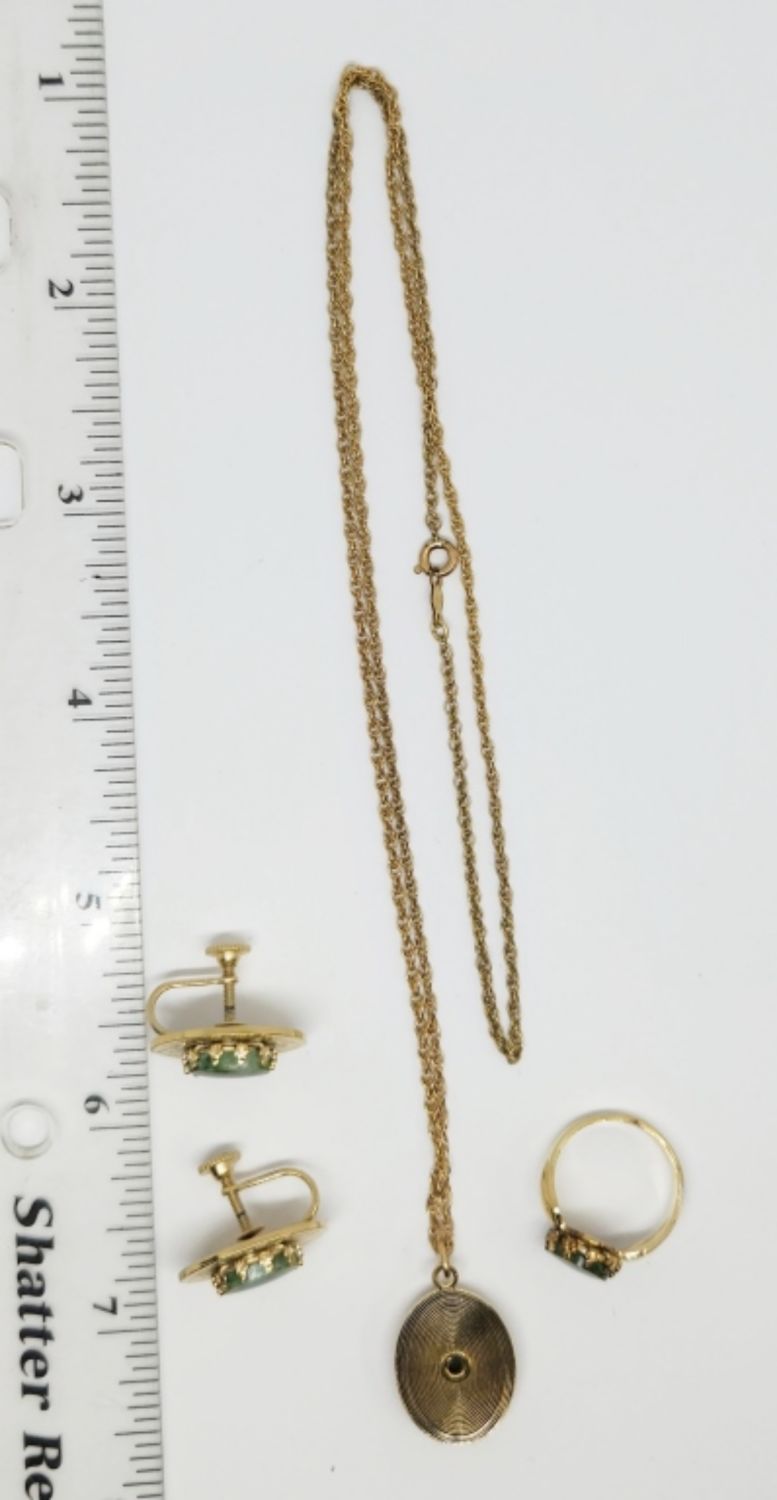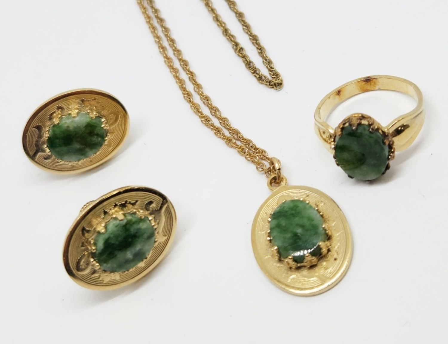 MARBLE LUCITE: (1)24 INCH NECKLACE (1)PAIR OF TWIST BACK EARRINGS & (1)SIZE 4 RING