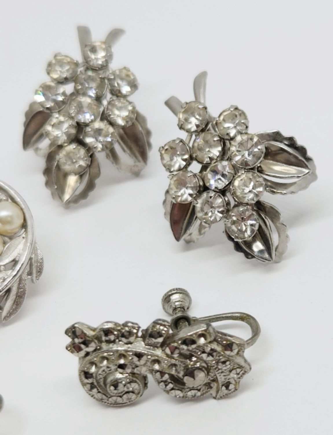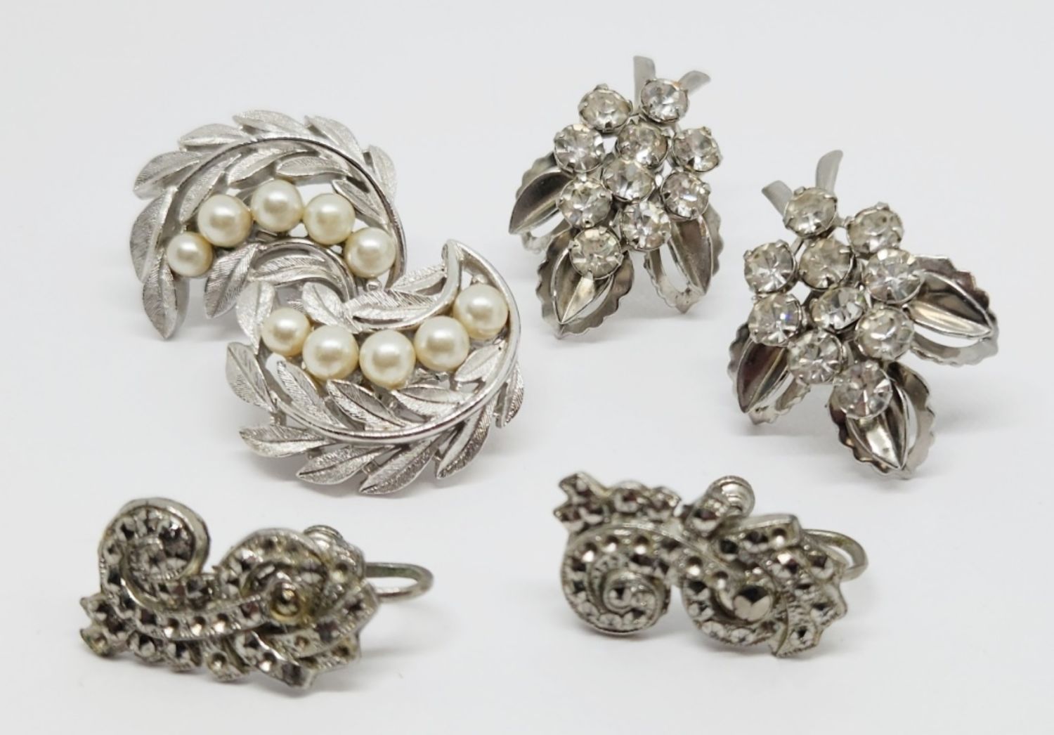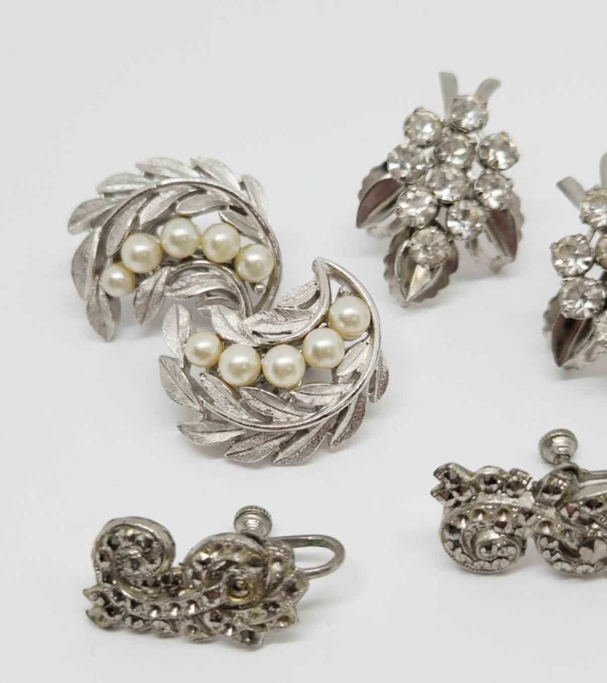 EARRINGS: (1)TRIFARI WITH FAUX PEARLS & (2)WITH RHINESTONES