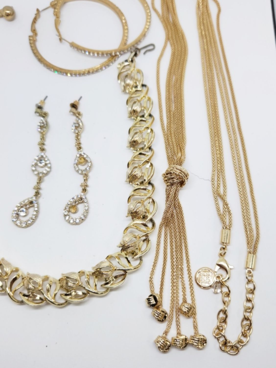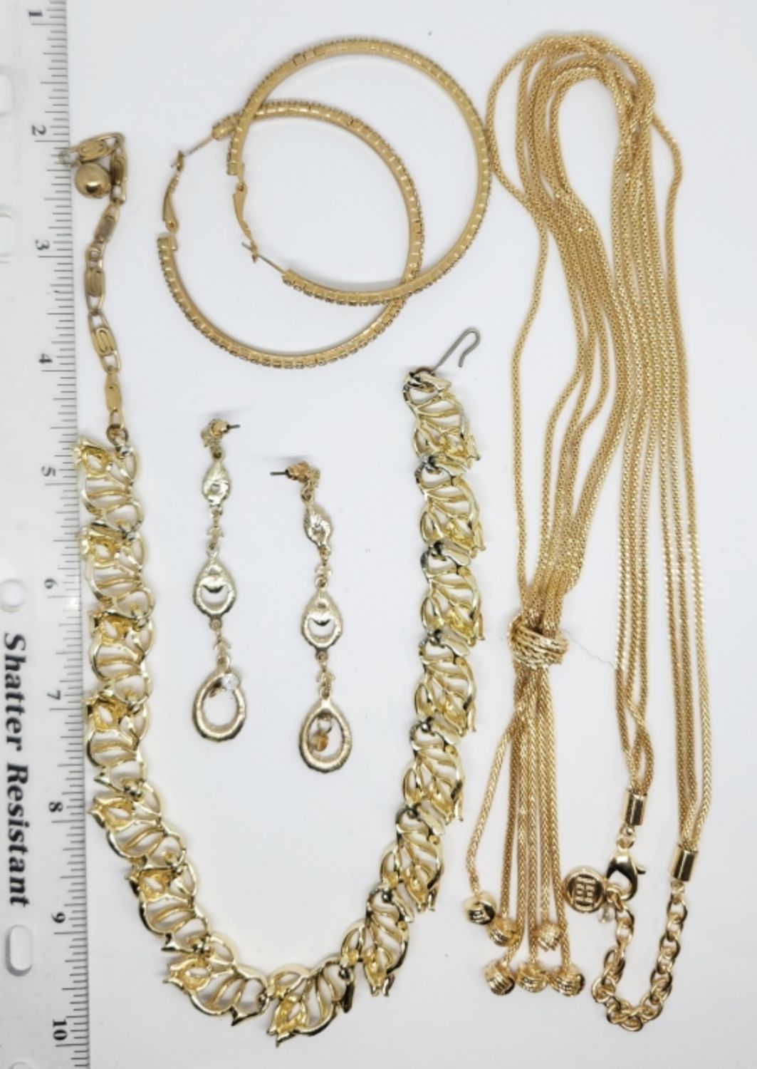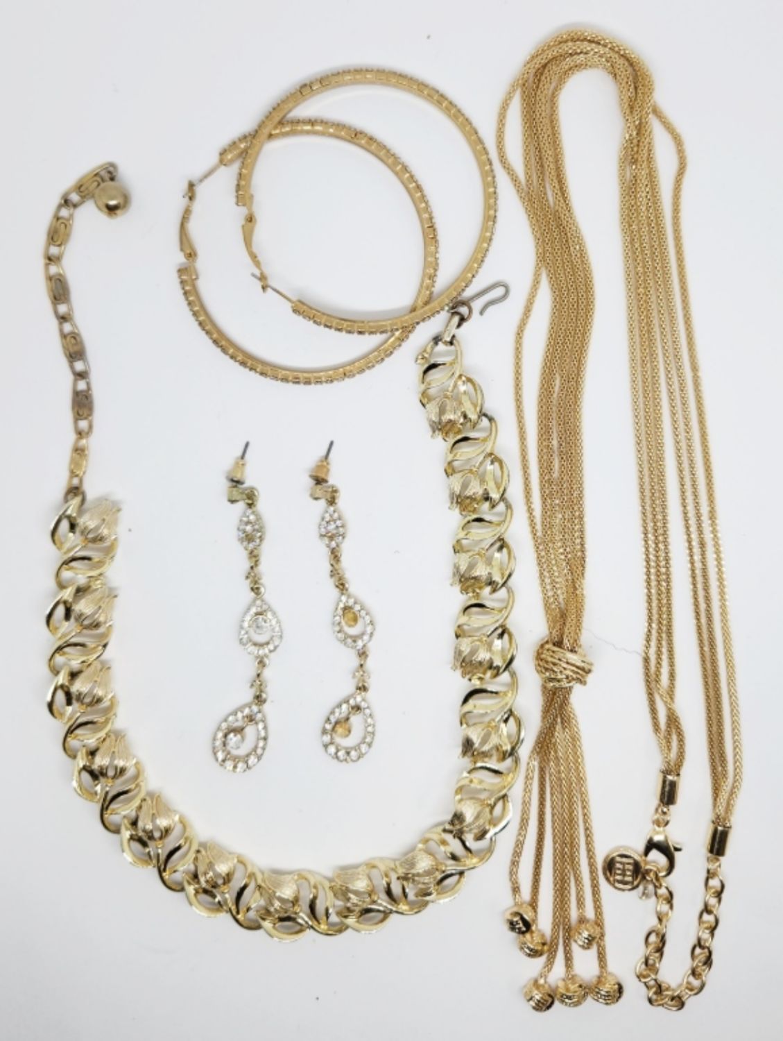 PIERCED EARRINGS (1)LISNET LEAF PANEL NECKLACE & (1)ROPE STYLE BOLO NECKLACE