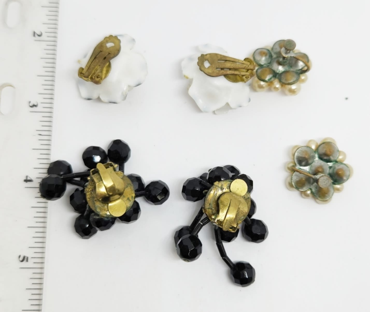 EARRINGS-FAUX PEARK-LUCITE-BLACK BEAD (1)MADE IS AUSTRIA