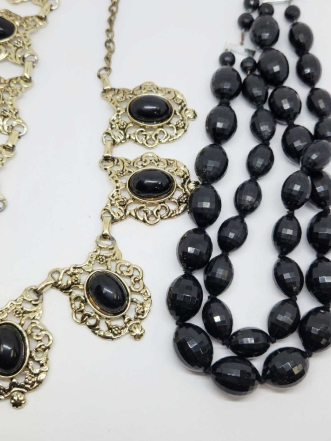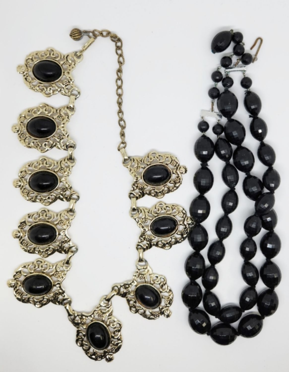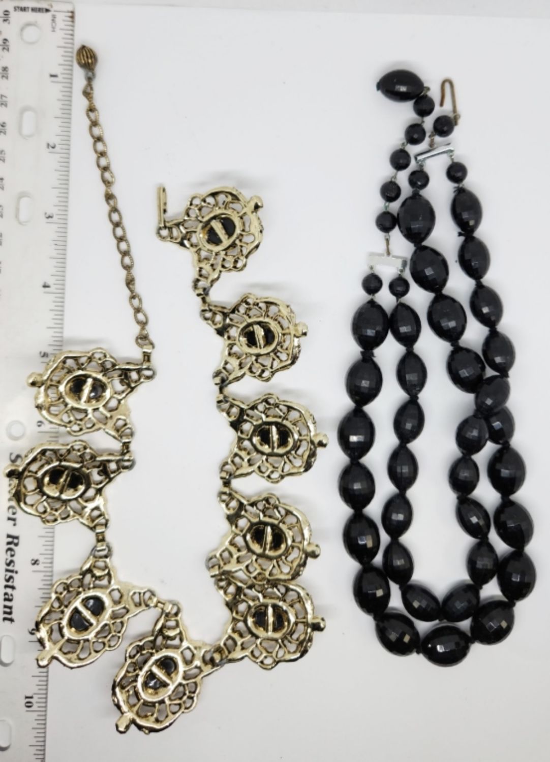 LUCITE PLUS BONUS DOUBLE STRANDED BLACK BEADED NECKLACE