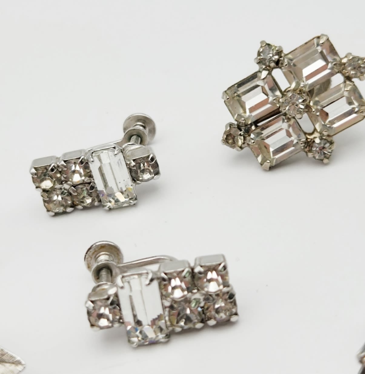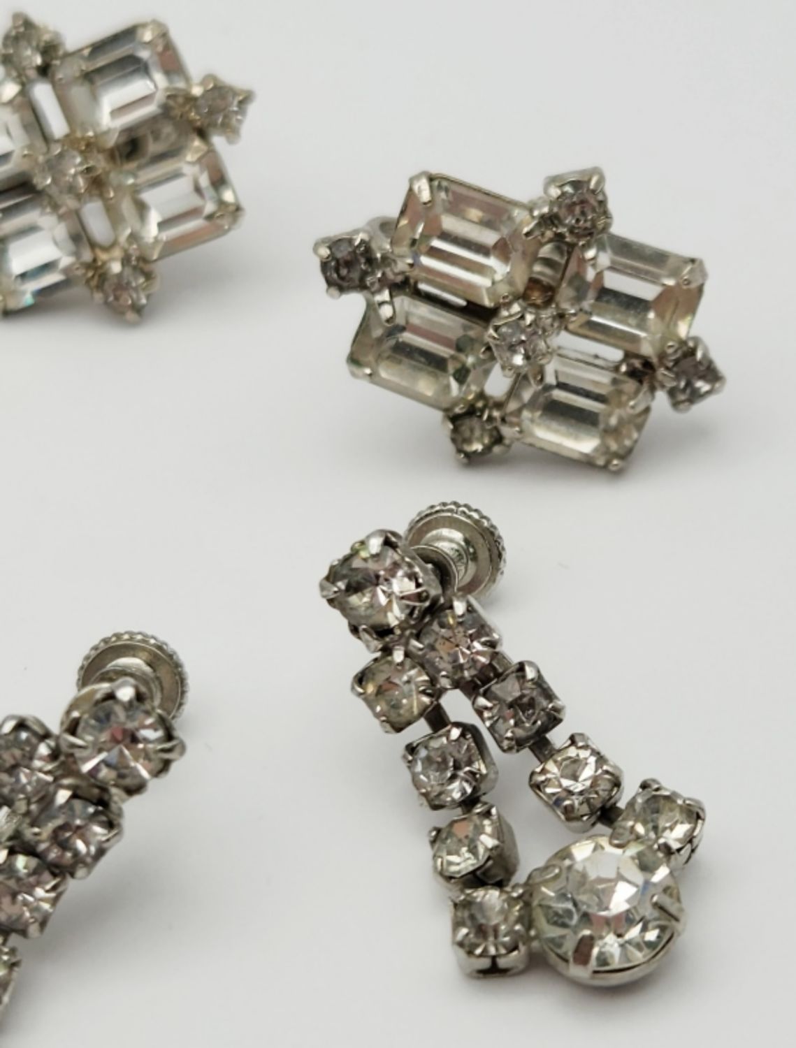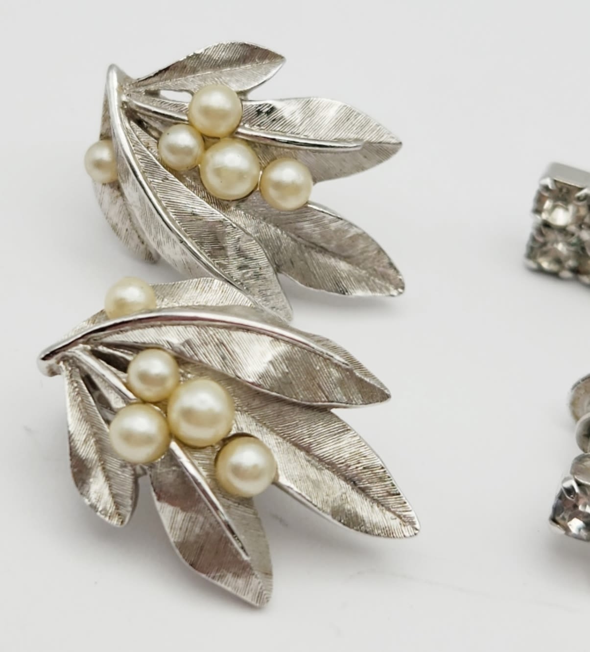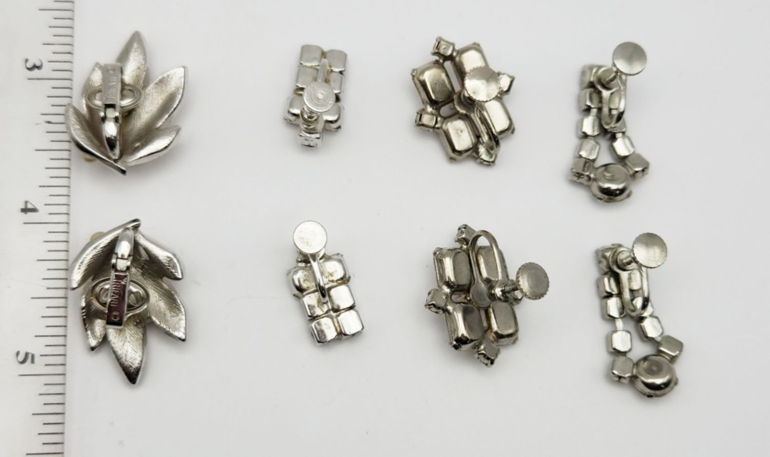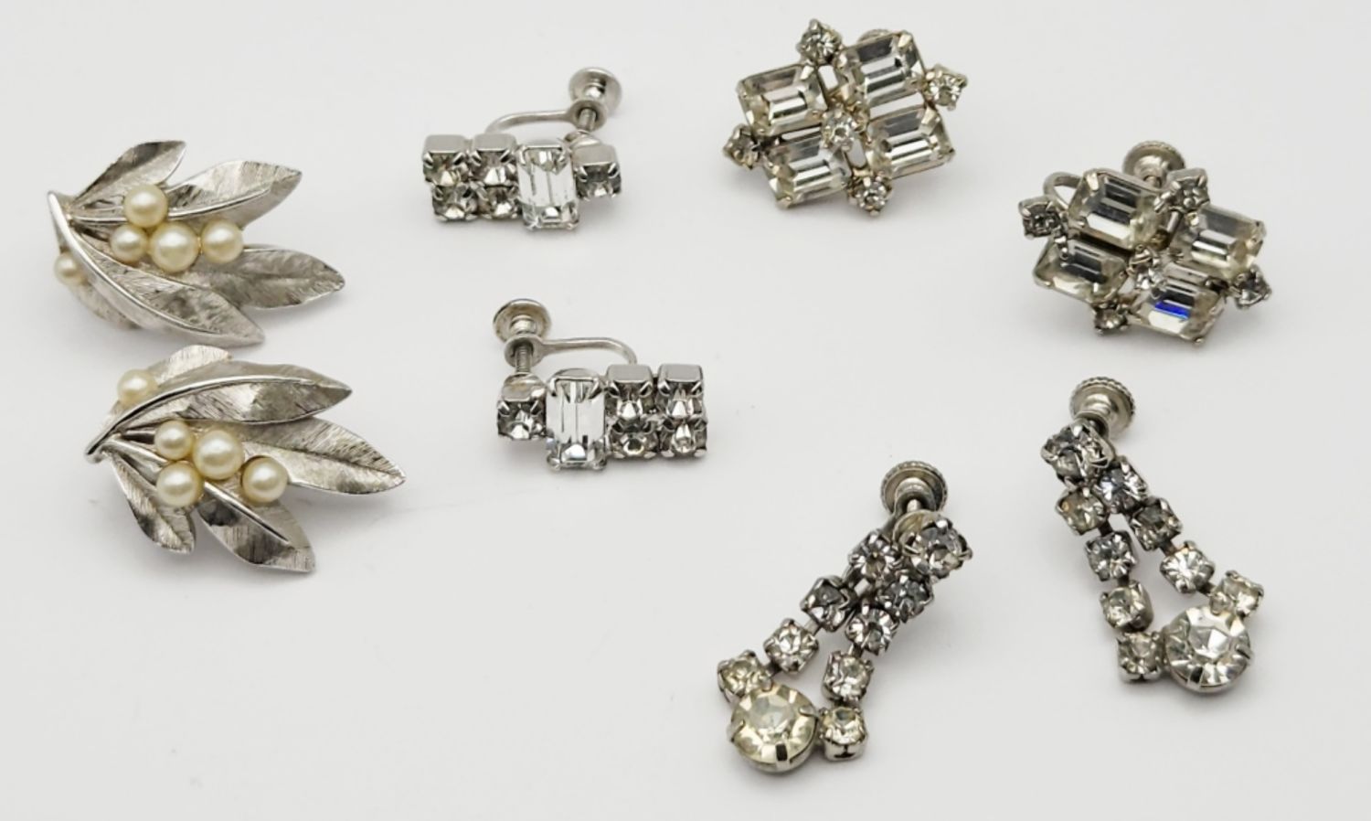 BACK EARRINGS: (1)TRIFARI WITH FAUX PEARLS & (3)PAIRS RHINESTONE