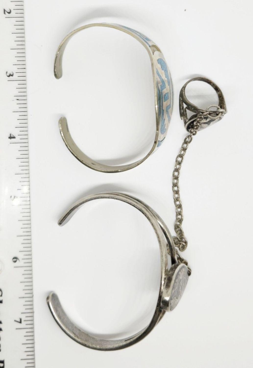 (1)SLAVE BRACELET WITH EAGLE INLAY DESIGN & (1)ALPACA MEXICO CUFF WITH CHIPPED TURQUOISE INLAY