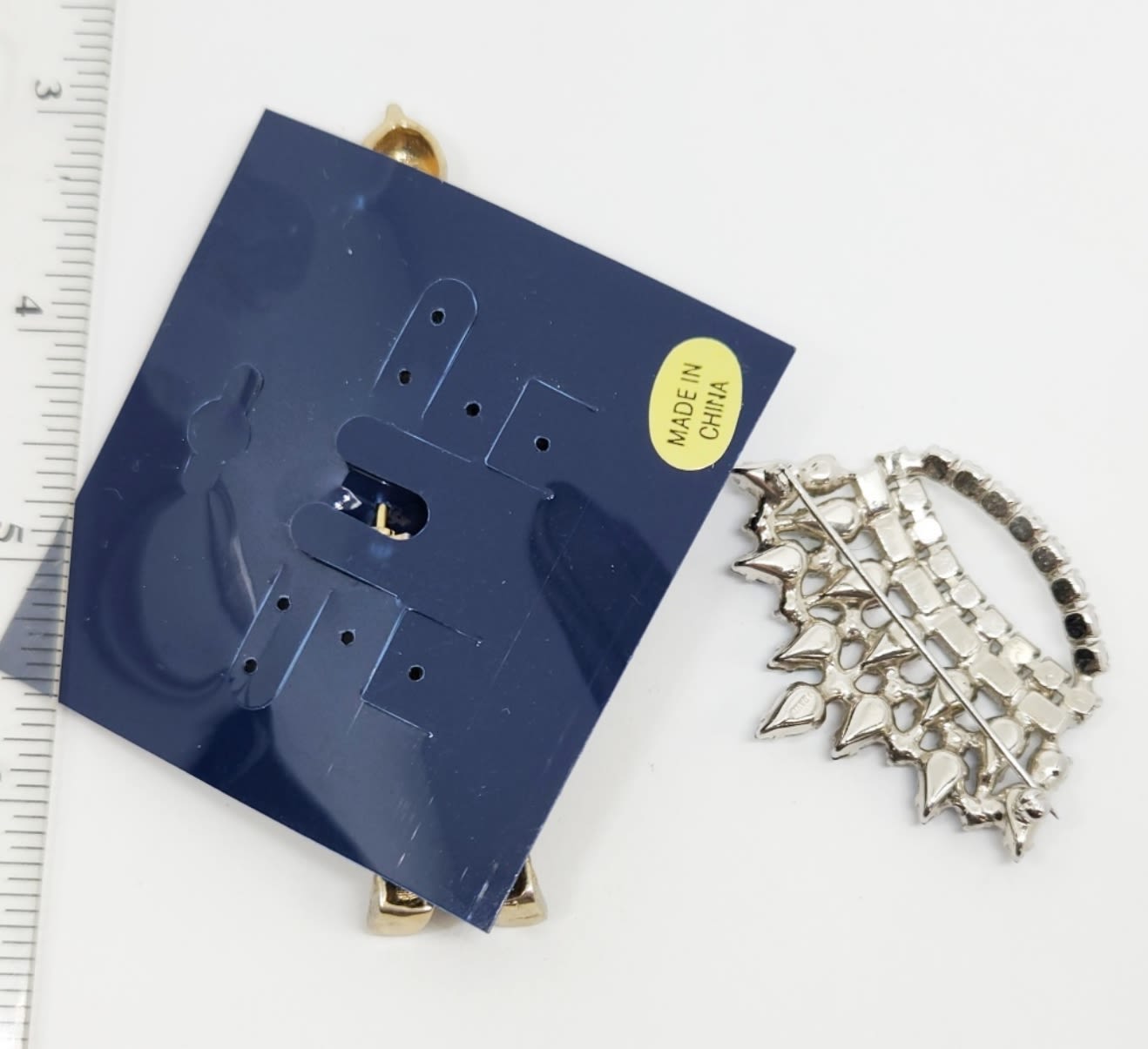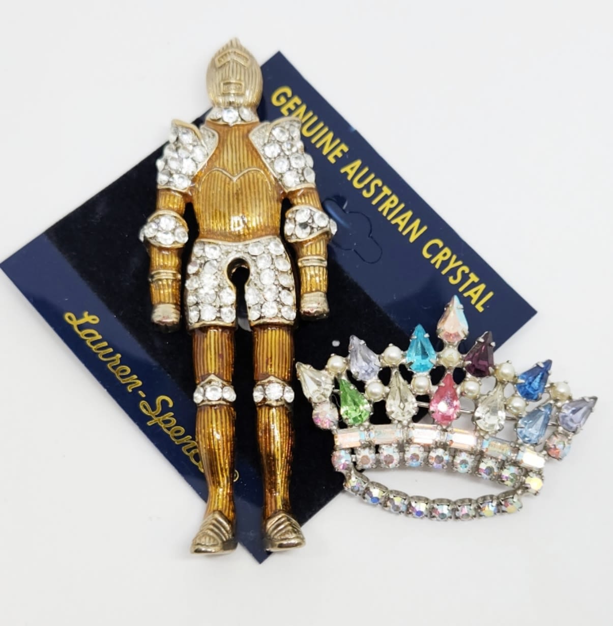 WITH YELLOW ENAMEL PLUS BONUS DAVID RHINESTONE & FAUX PEARL CROWN BROOCH