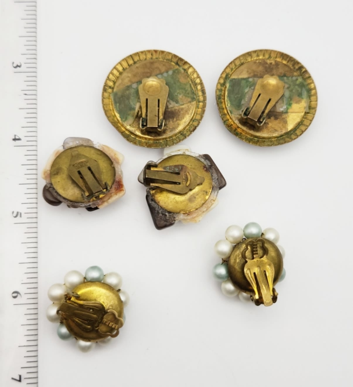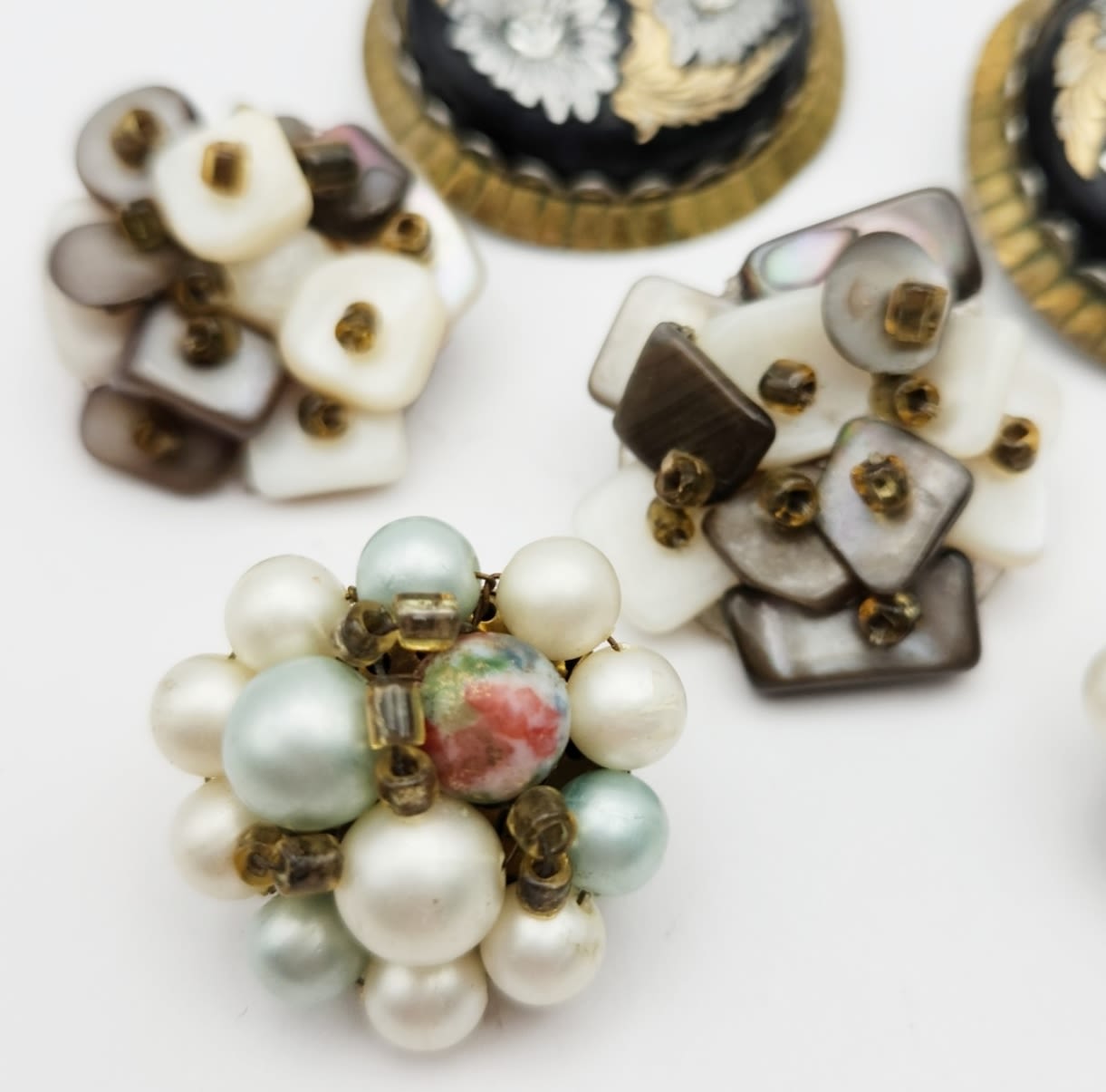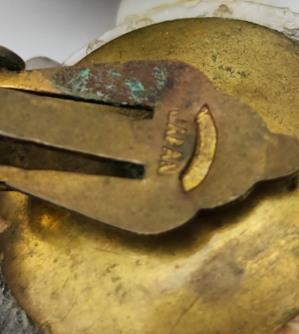 (1)CIRCULAR WITH ENAMEL FLOWER DESIGN WITH RHINESTONES & (2)PAIRS OF JAPAN BEADED