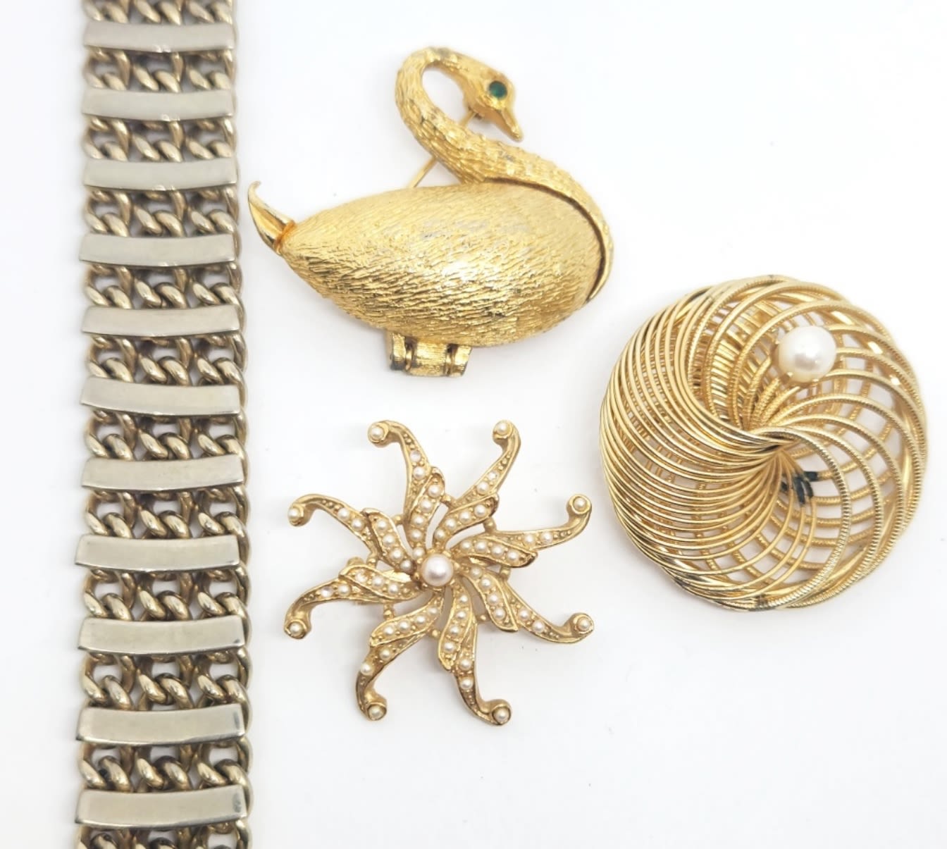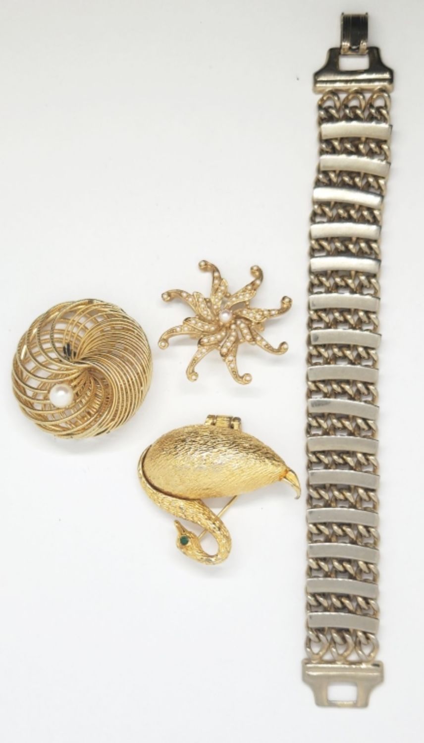 BRACELET & (3)BROOCHES WITH FAUX PEARLS & RHINESTONES
