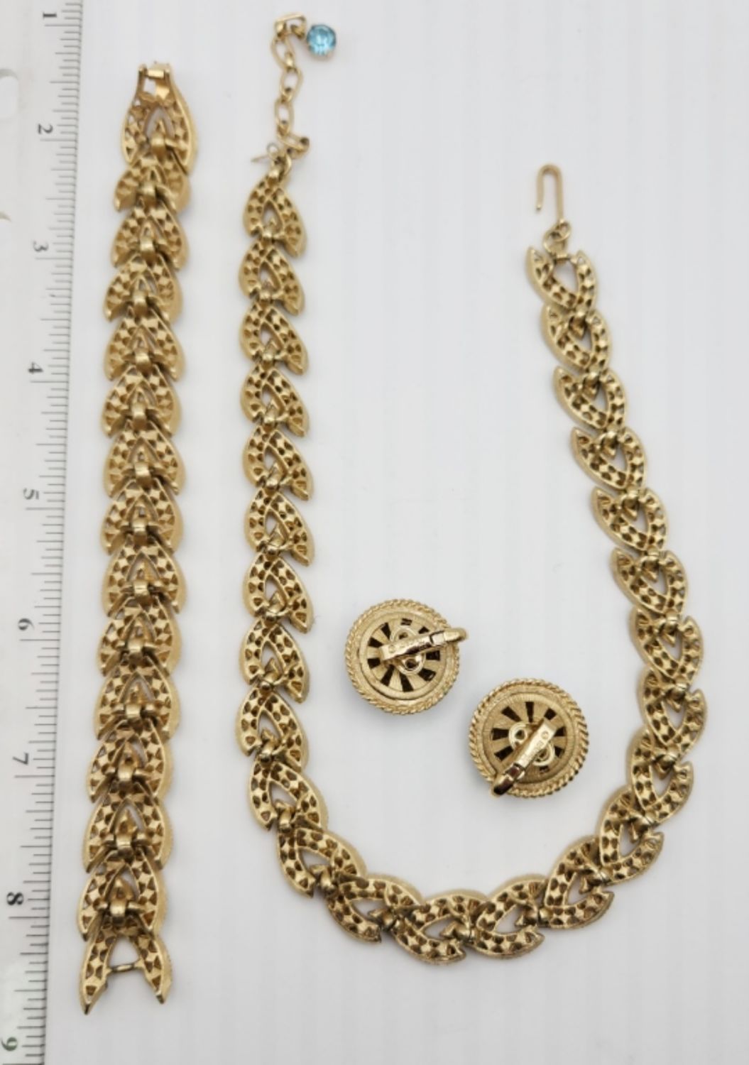 NECKLACE WITH MATCHING BRACELET AND CLIP ON EARRINGS-NECKLACE MEASURES 16.5 INCHES & BRACELET MEASURES 7.5 INCHES