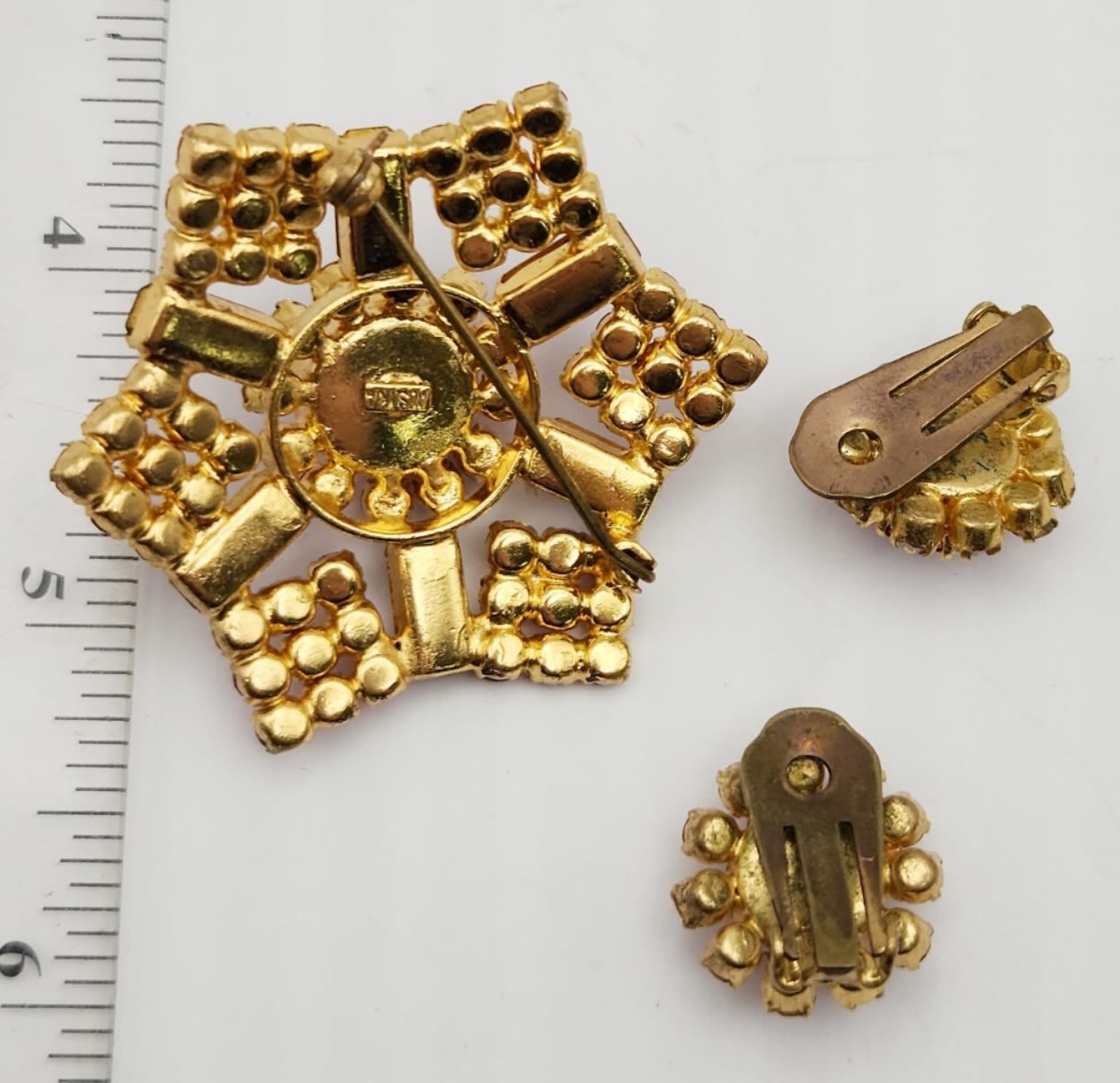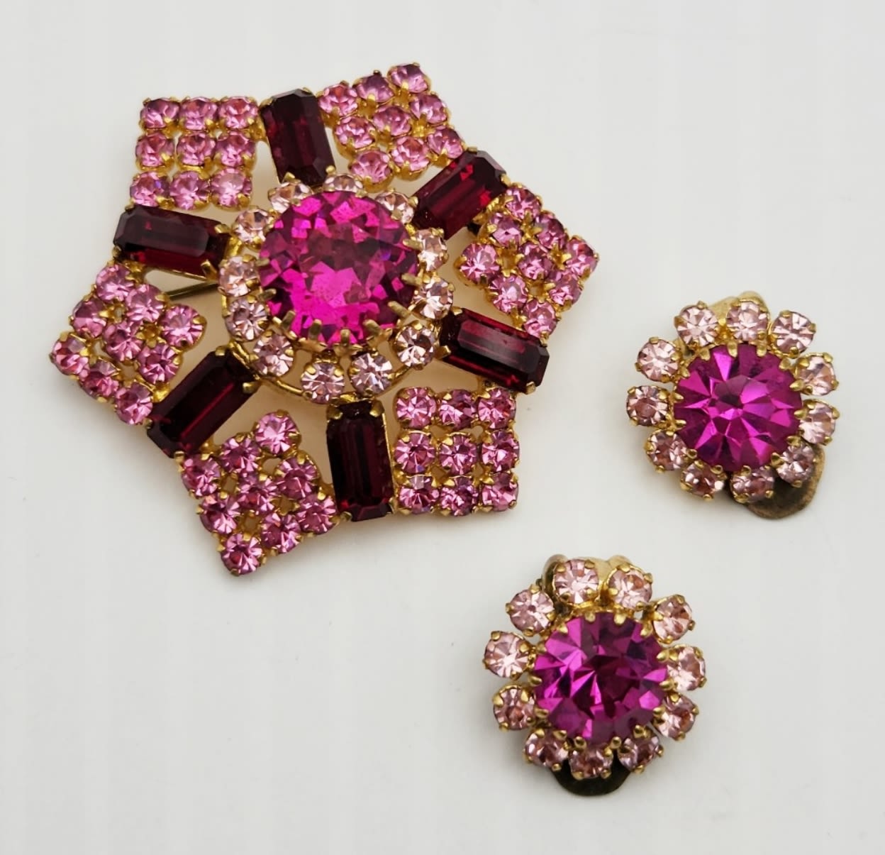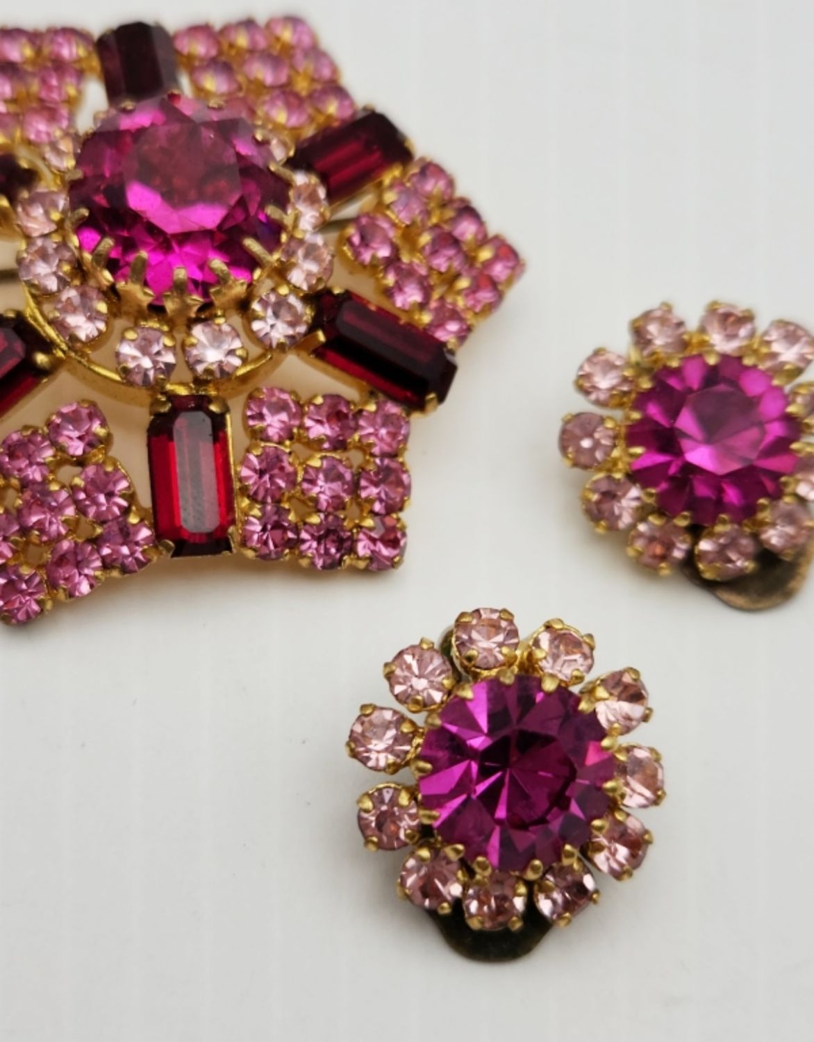 RHINESTONE BROOCH WITH MATCHING PAIR OF CLIP ON EARRINGS-MADE IS AUSTRIA