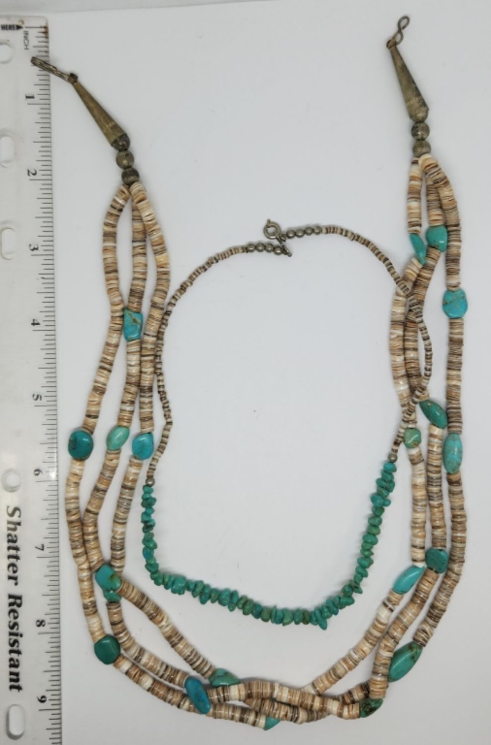 NECKLACES: (1)21 INCH TRIPLE STRANDED & (1)15 INCH
