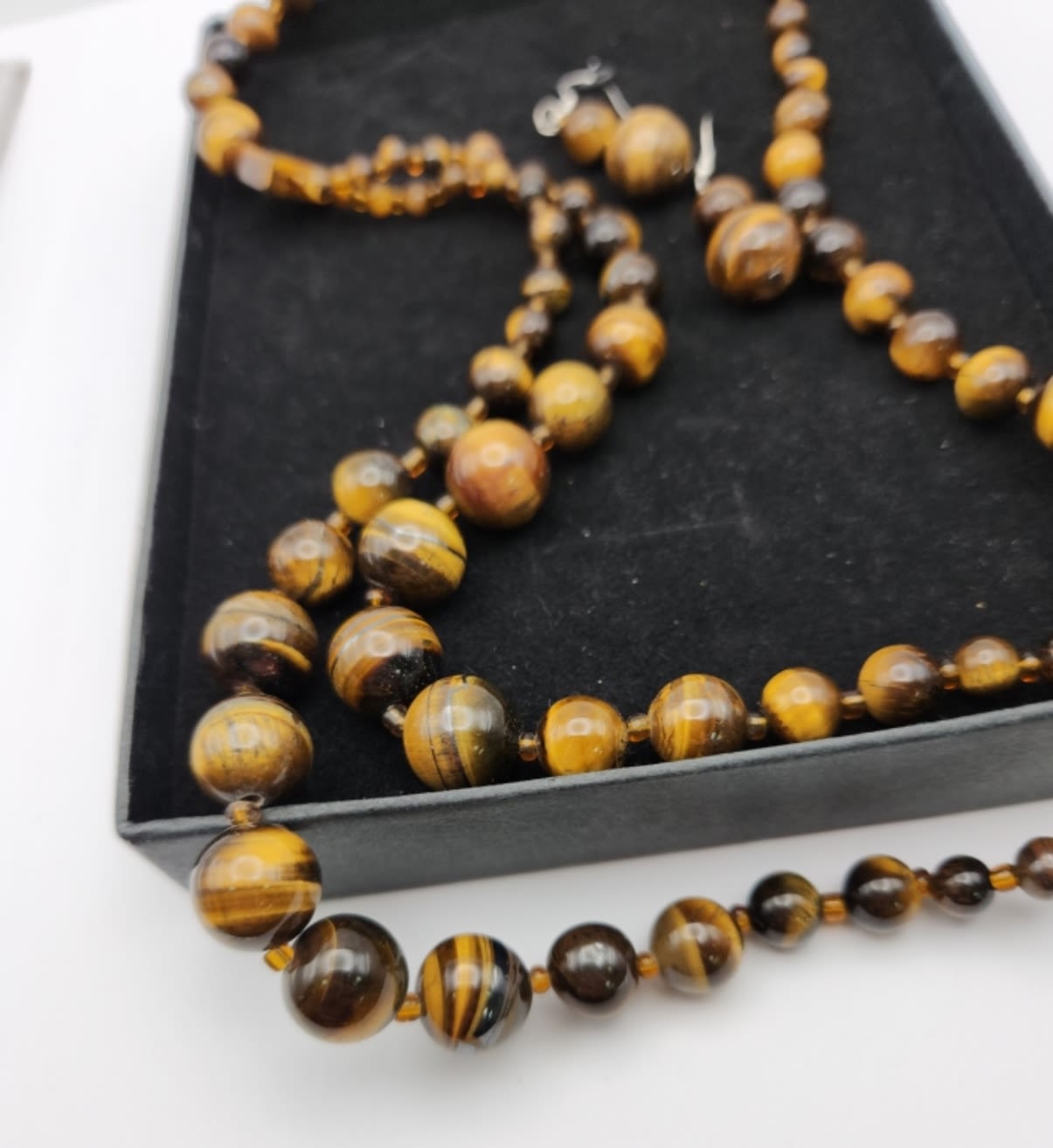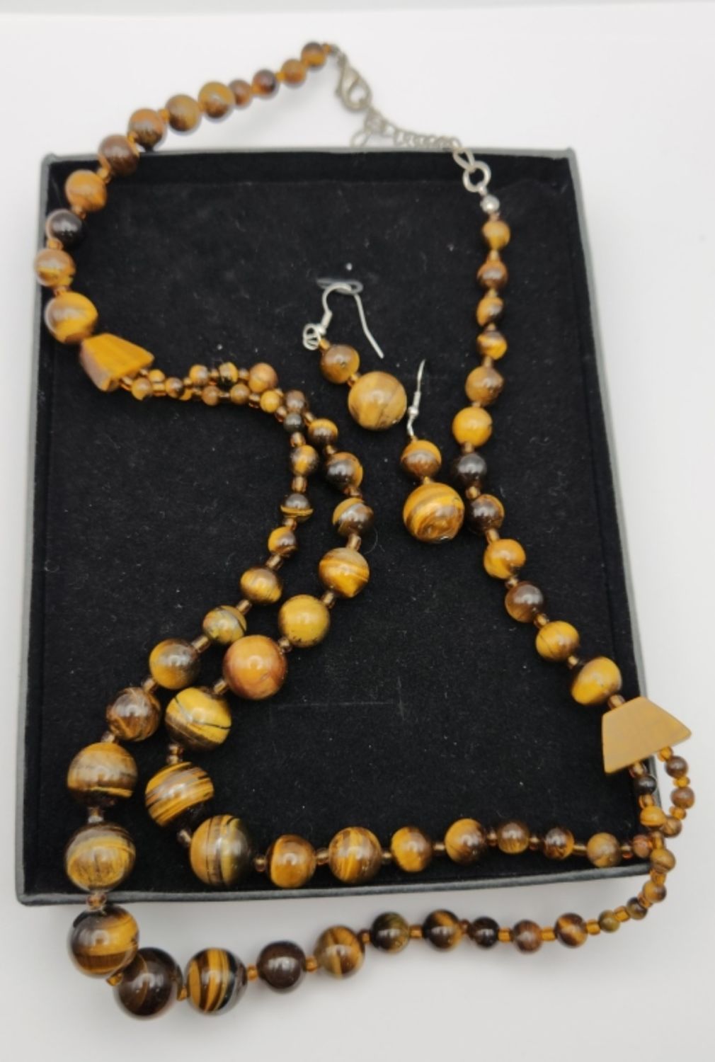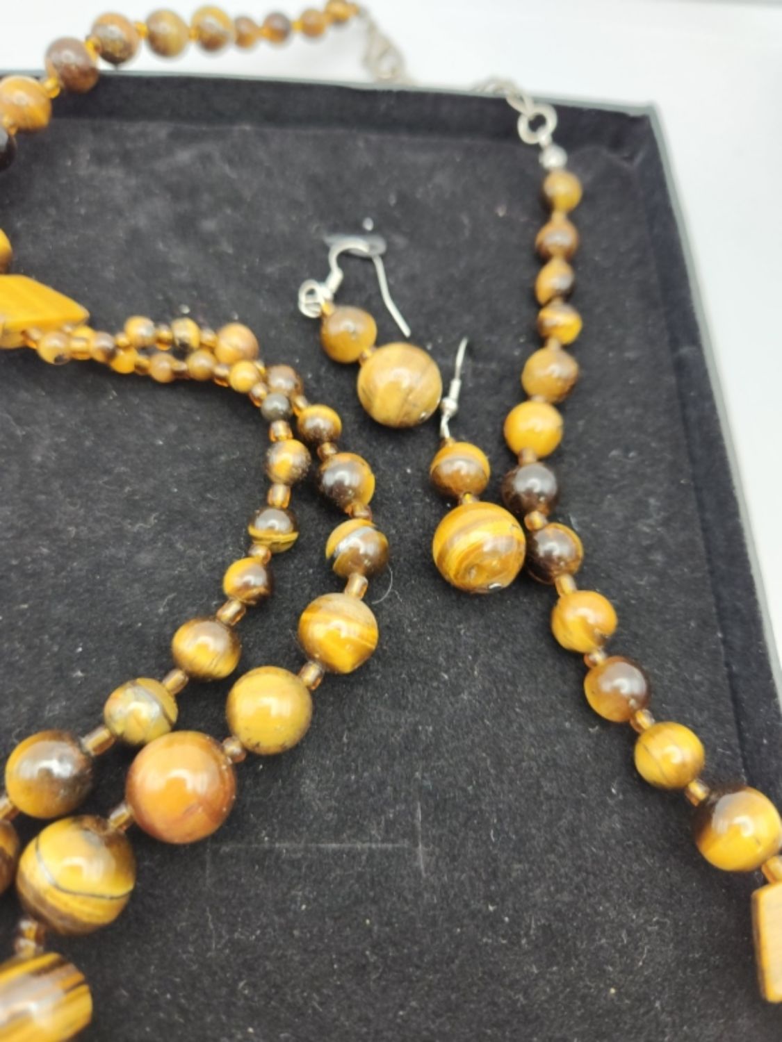 BEADED NECKLACE WITH MATCHING PAIR OF PIERCE DANGLY EARRINGS-NECKLACE MEASURES 23 INCHES