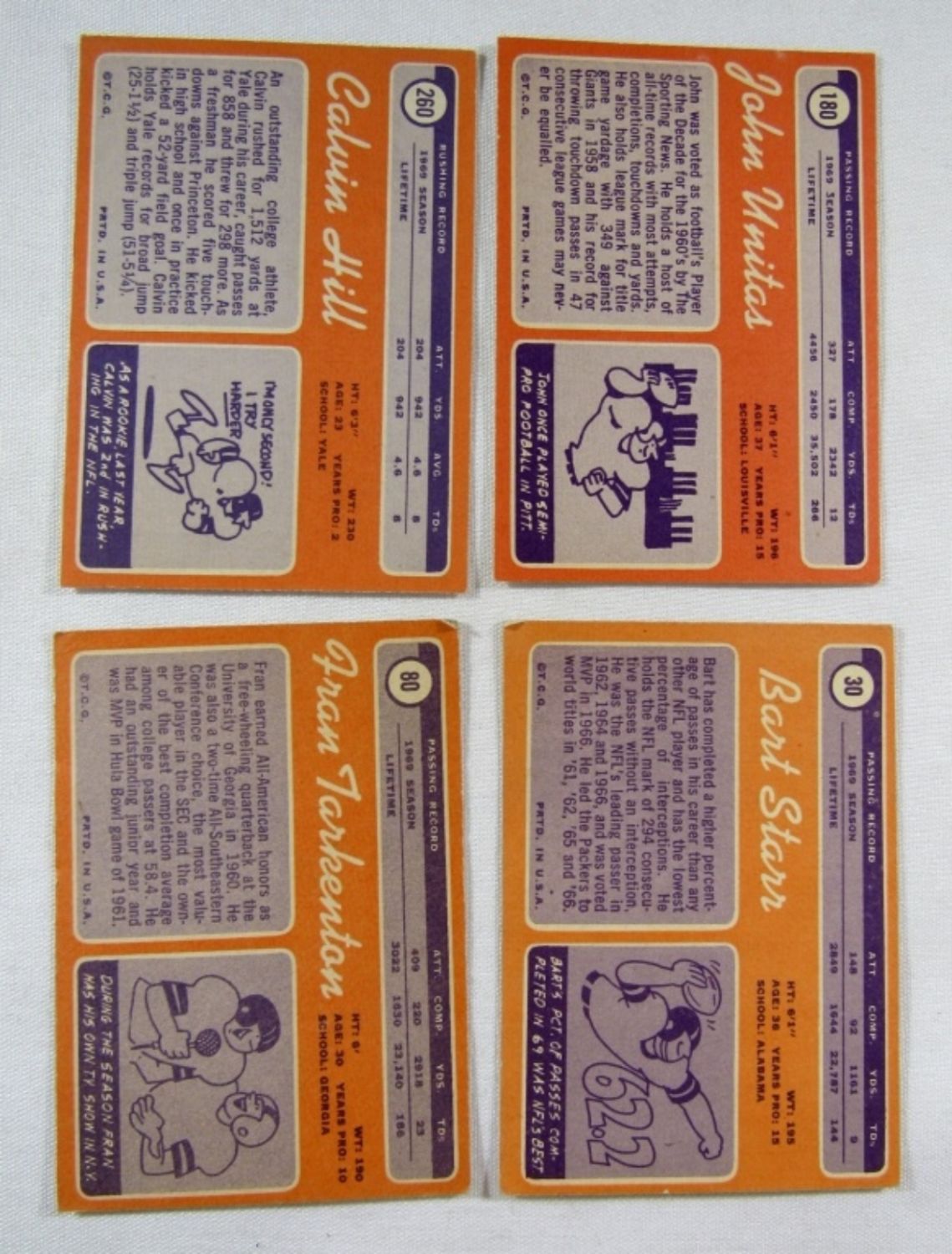 #30 BART STARR, #80 FRAN TARKENTON, #180 JOHNNY UNITAS, #260 CALVIN HILL