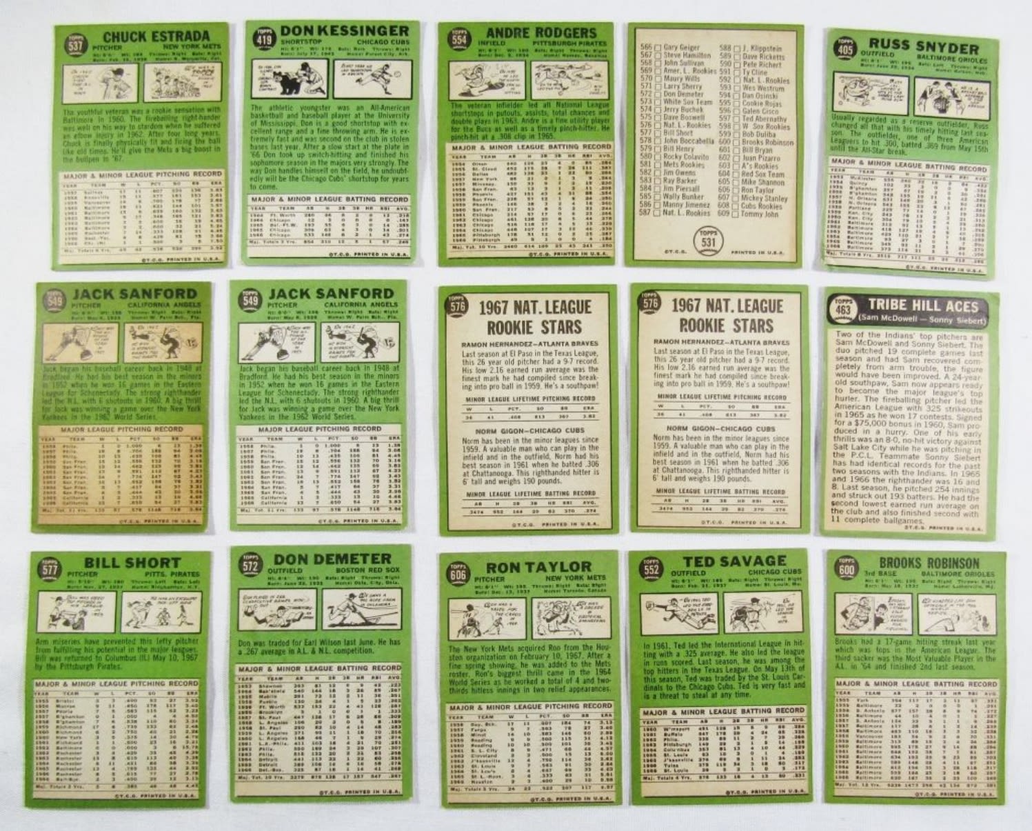 (14) 1967 TOPPS CARDS – OVERALL EX with (2) VG