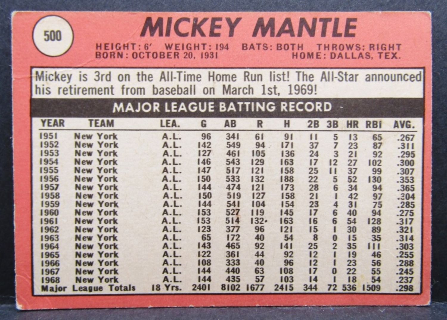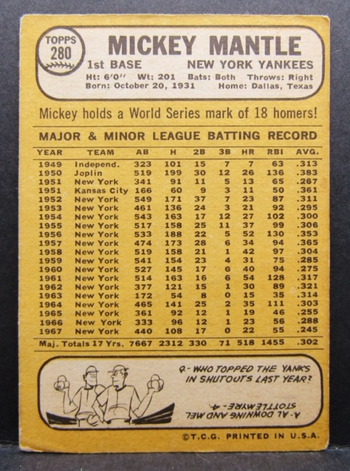 1959 T #10, 1962 T #200, 1967 T #150, 1968 T #280, 1969 T #500 MOST HAVE TAPE STAINS on EDGES- FULL BOOK in NM $5500