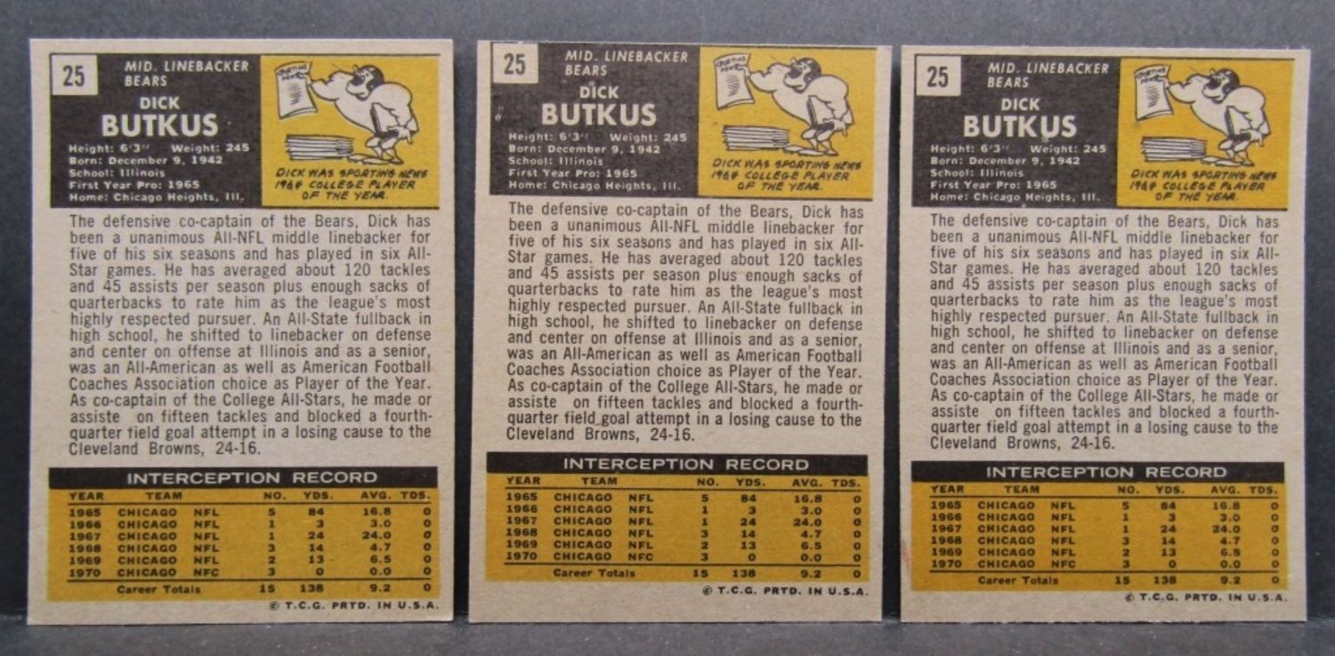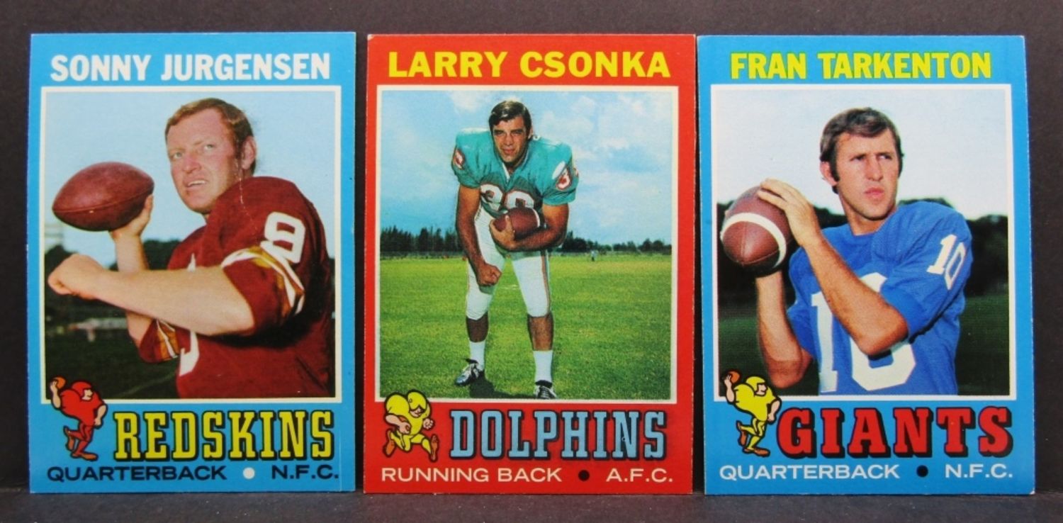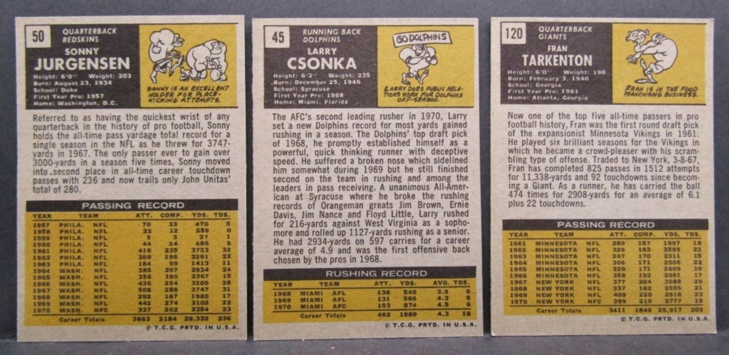 (3) #25 BUTKUS, #45 CSONKA, #50 JURGENSEN, #120 TARKENTON – NICE CLEAN LOT