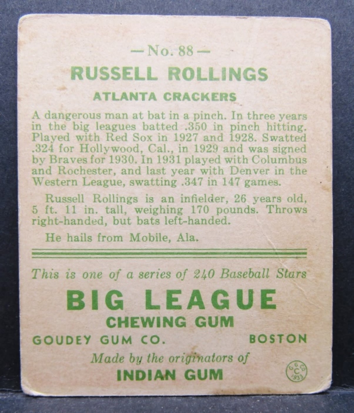#80 MANION, #83 JABLONOWSKI, #85 SAND, #86 TODT, #88 ROLLINGS – TAPE STAINS – #85 CREASES #83 CORNER TORN – REST NO CREASES
