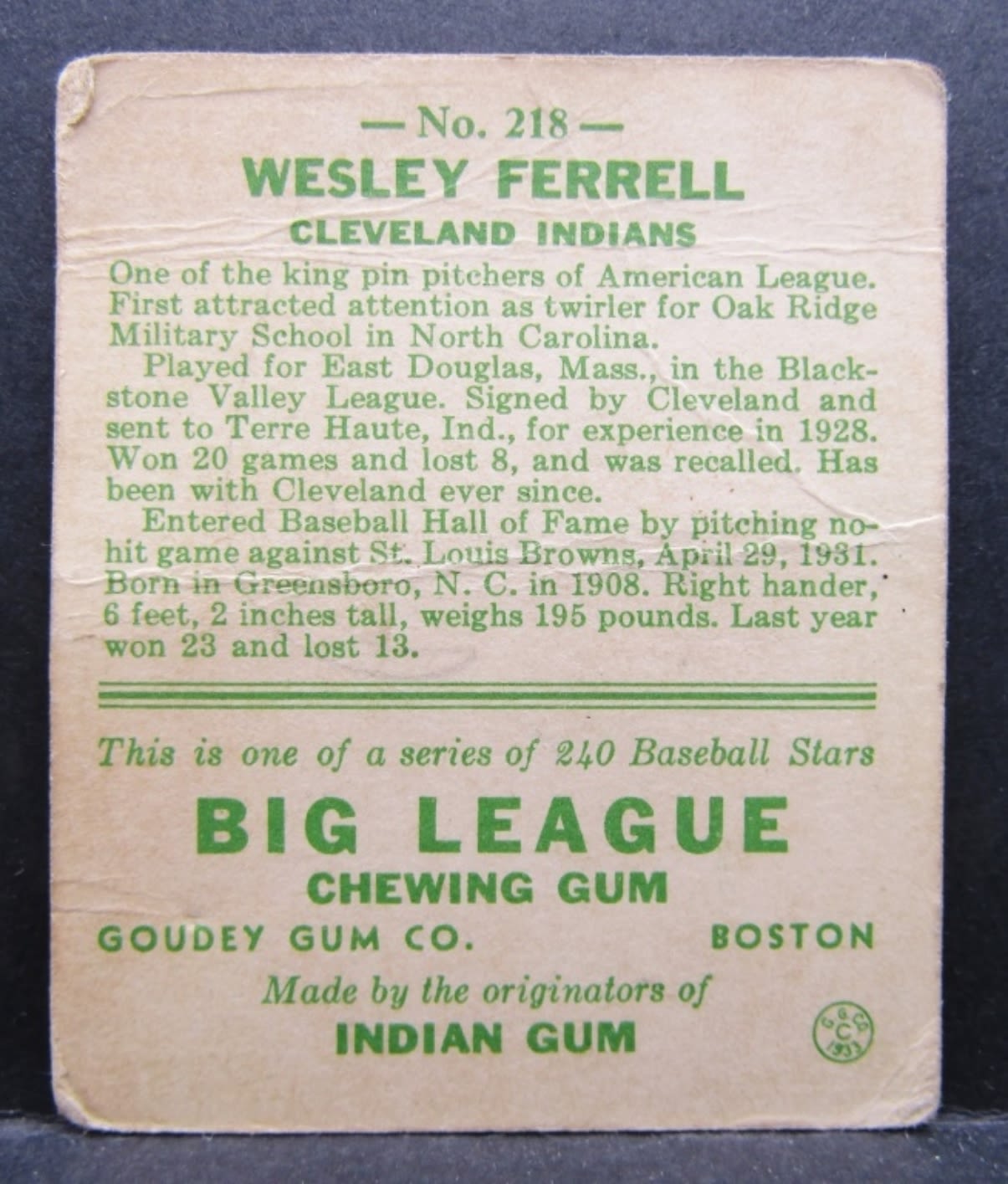 #204 STEPHENSON, #213 ADAMS, #218 FERRELL, #219 HASS – TAPE STAIN / CREASED