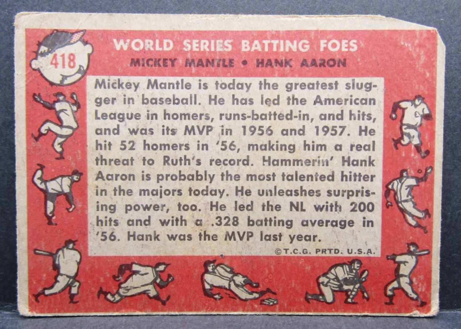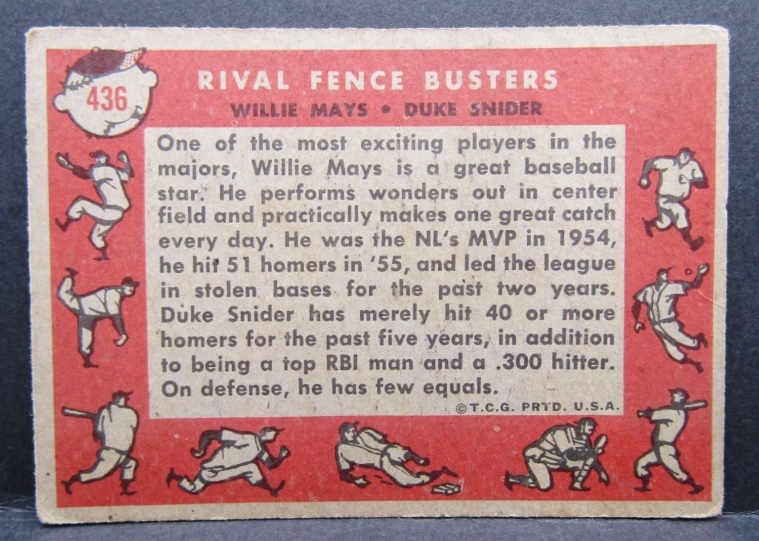 GOOD BOTTOM LEFT CORNER CLIPPED, #436 MAYS/SNIDER VGEX, #304 KUENN/KALINE VGEX