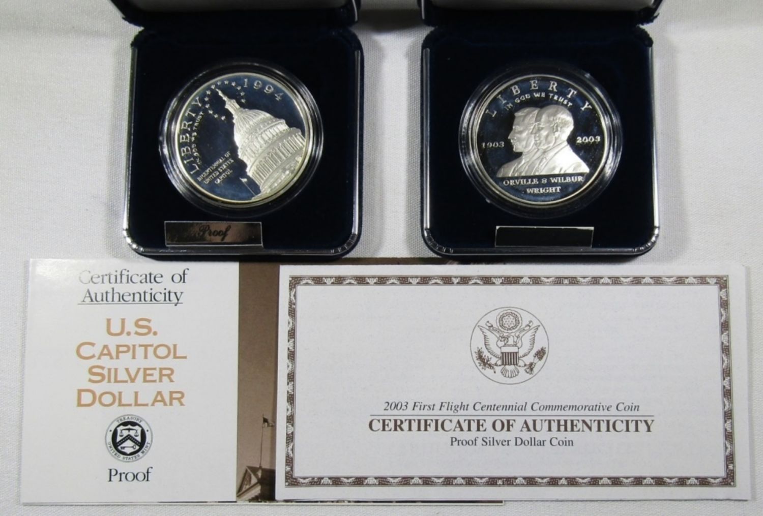 1994 U.S. CAPITAL BICENTENNIAL SILVER DOLLAR PROOF AND 2003 U.S.FIRST FLIGHT CENTENNIAL COIN PROOF