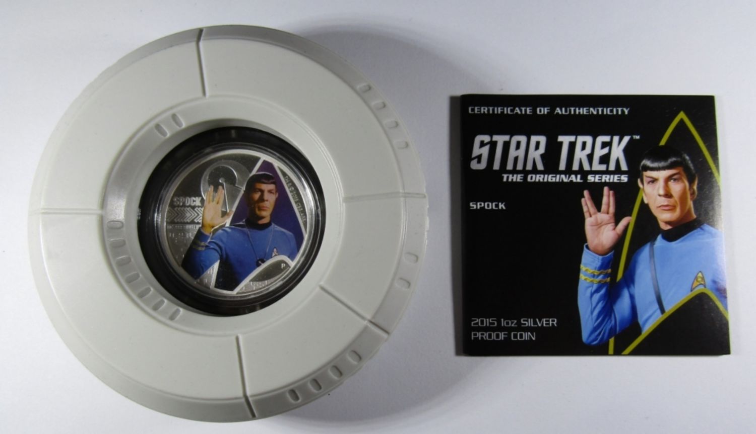TUVALU 1oz SILVER, SPOCK, WITH ORIGINAL BOX, DISPLAY, AND COA.