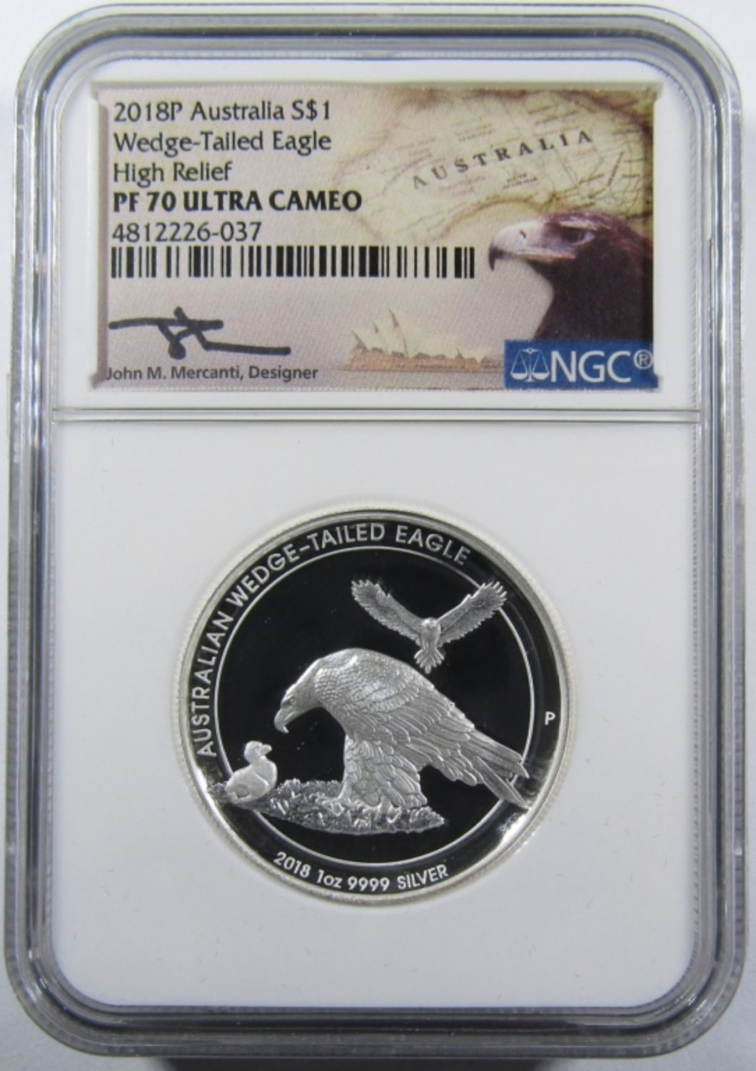 WEDGE-TAILED EAGLE, HIGH RELIEF, JOHN MERCANTI SIGNED, IN OGP W/ COA