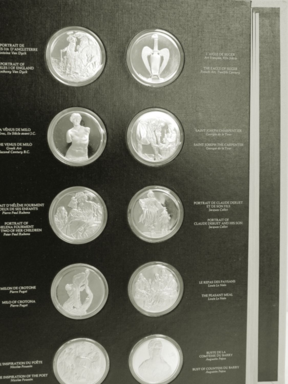 (50) STERLING SILVER ROUNDS 1.25 ozt EACH ( 1298 dwt) of BEAUTIFUL ARTIST CREATIONS in a NICE DISPLAY ALBUM