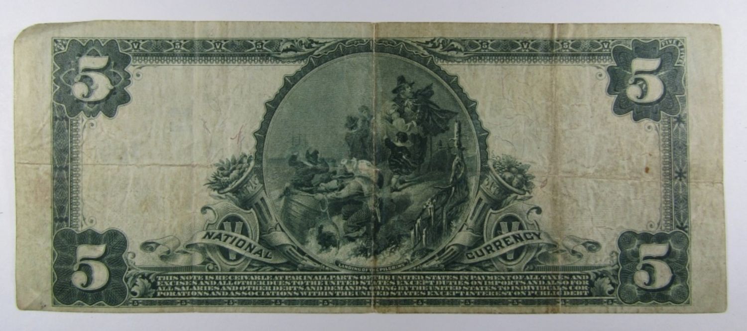 NICE CONDITION – THE FIRST NATIONAL BANK OF THE CITY OF NEW YORK, NY – FIVE DOLLAR NATIONAL CURRENCY