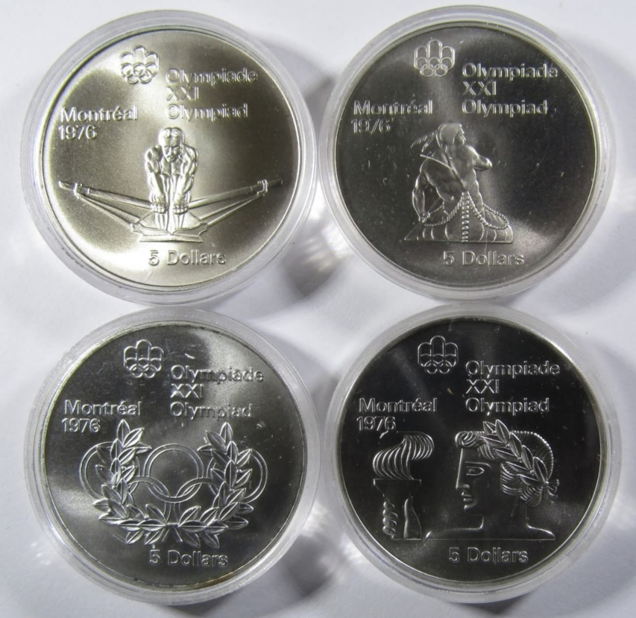 MONTREAL OLYMPICS 1976 OLYMPICS XXI- ATHLETE WITH TORCH, OLYMPIC RINGS AND WREATH, CANOEING, AND ROWING.