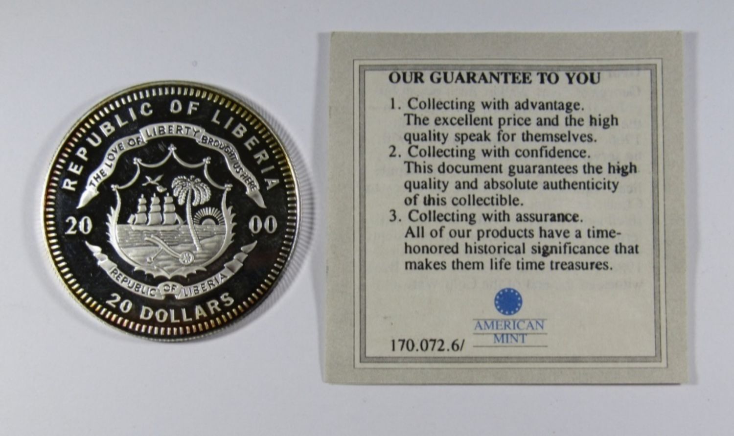 REPUBLIC OF LIBERIA XLI U.S. PRESIDENT, .999 SILVER PROOF COIN WITH COA