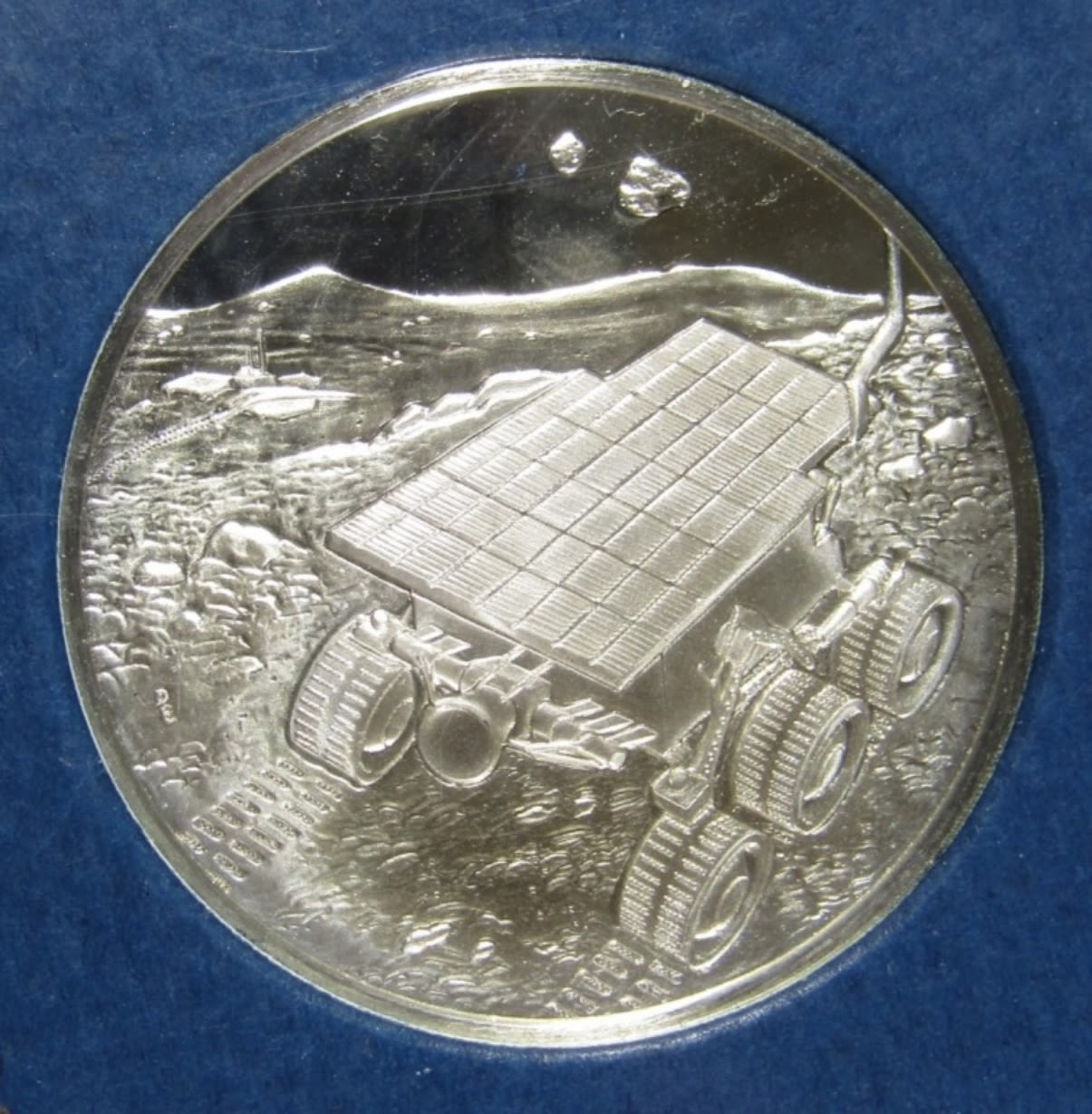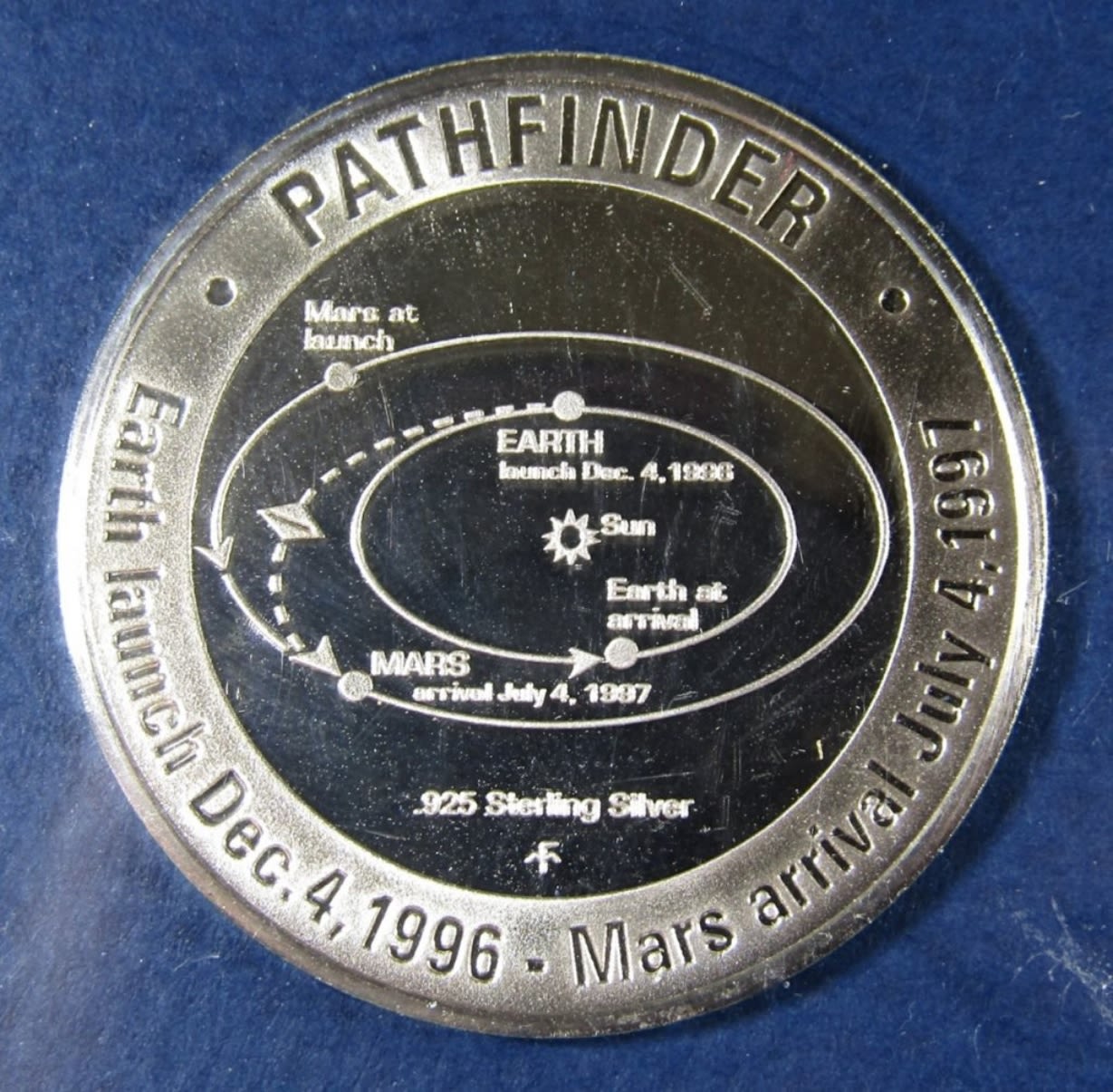 MARS PATHFINDER MISSION EYEWITNESS COMMEMORATIVE MEDAL, SOLID STERLING SILVER, FRANKLIN MINT, WITH DISPLAY BASES, NO BOX OR COA.