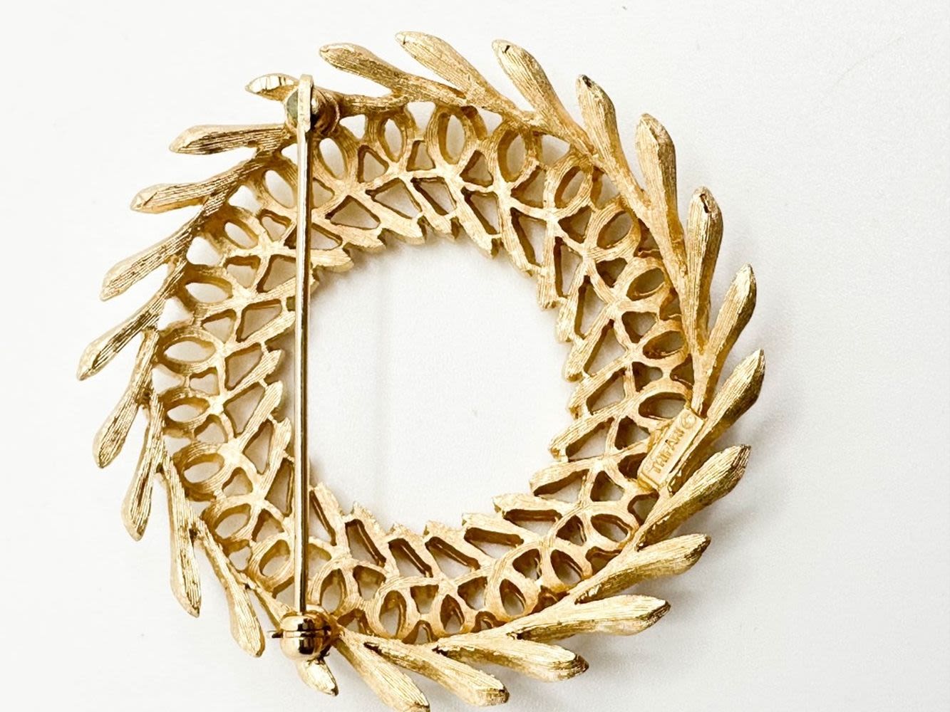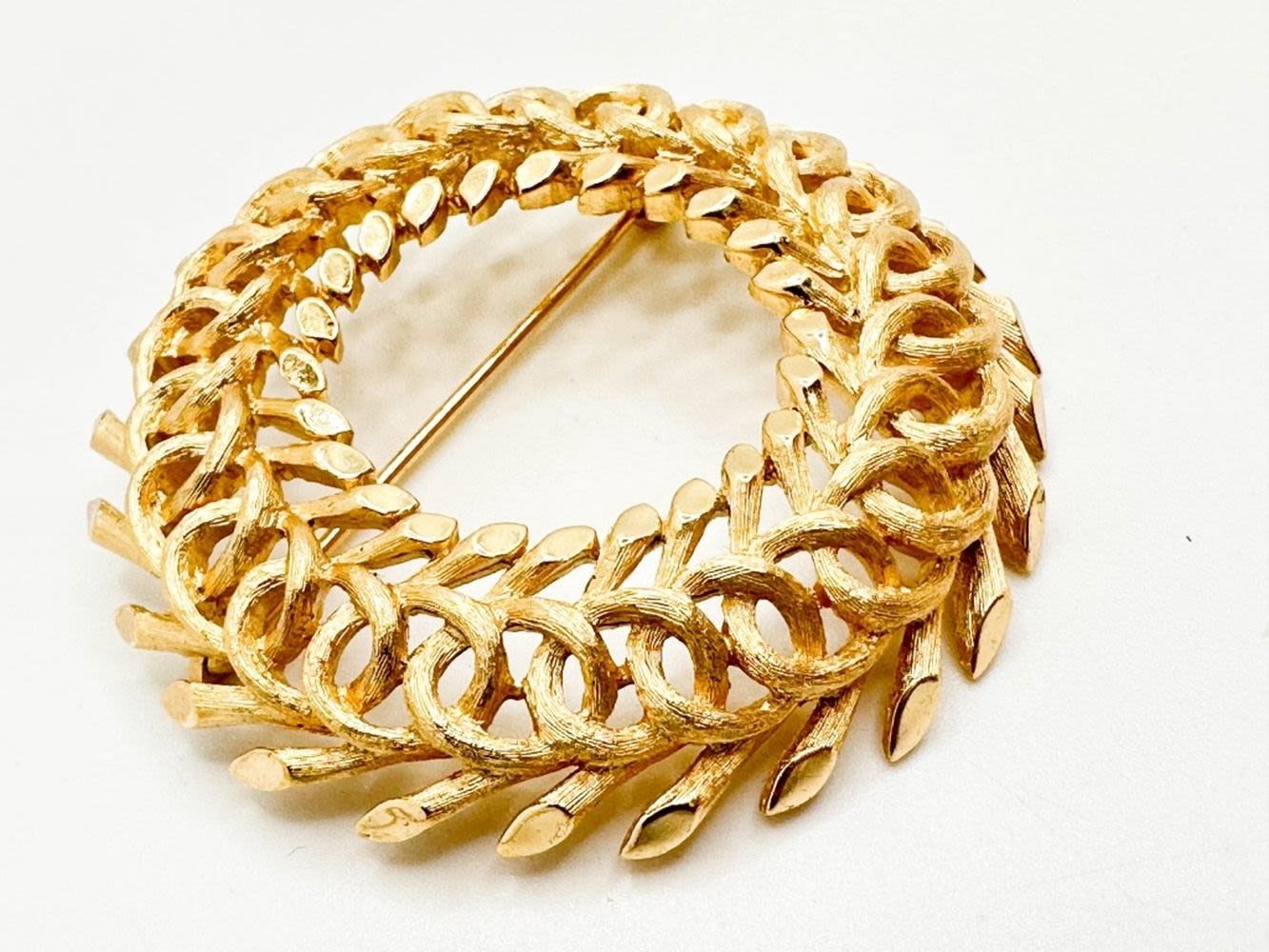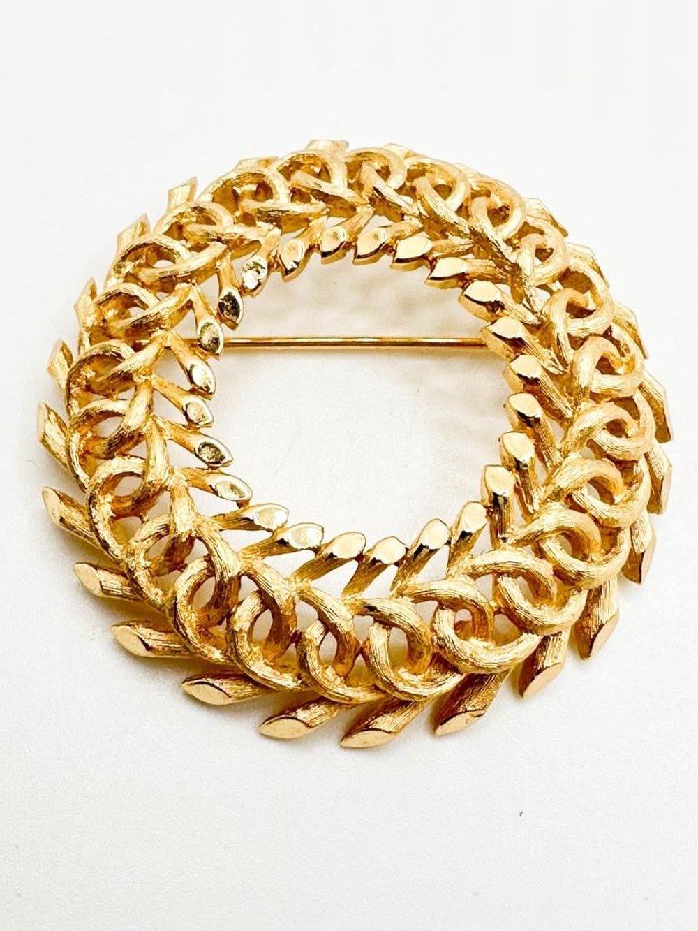 TRIFARI CROWN VINTAGE SPIRAL BROOCH IN GOLD TONE