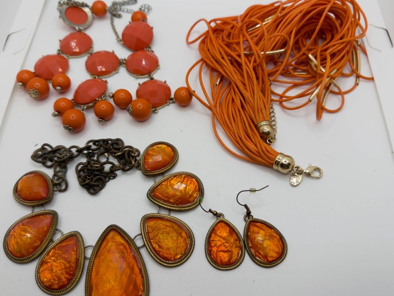 ORANGE NECKLACE ASSORTMENT, ONE WITH ERARINGS