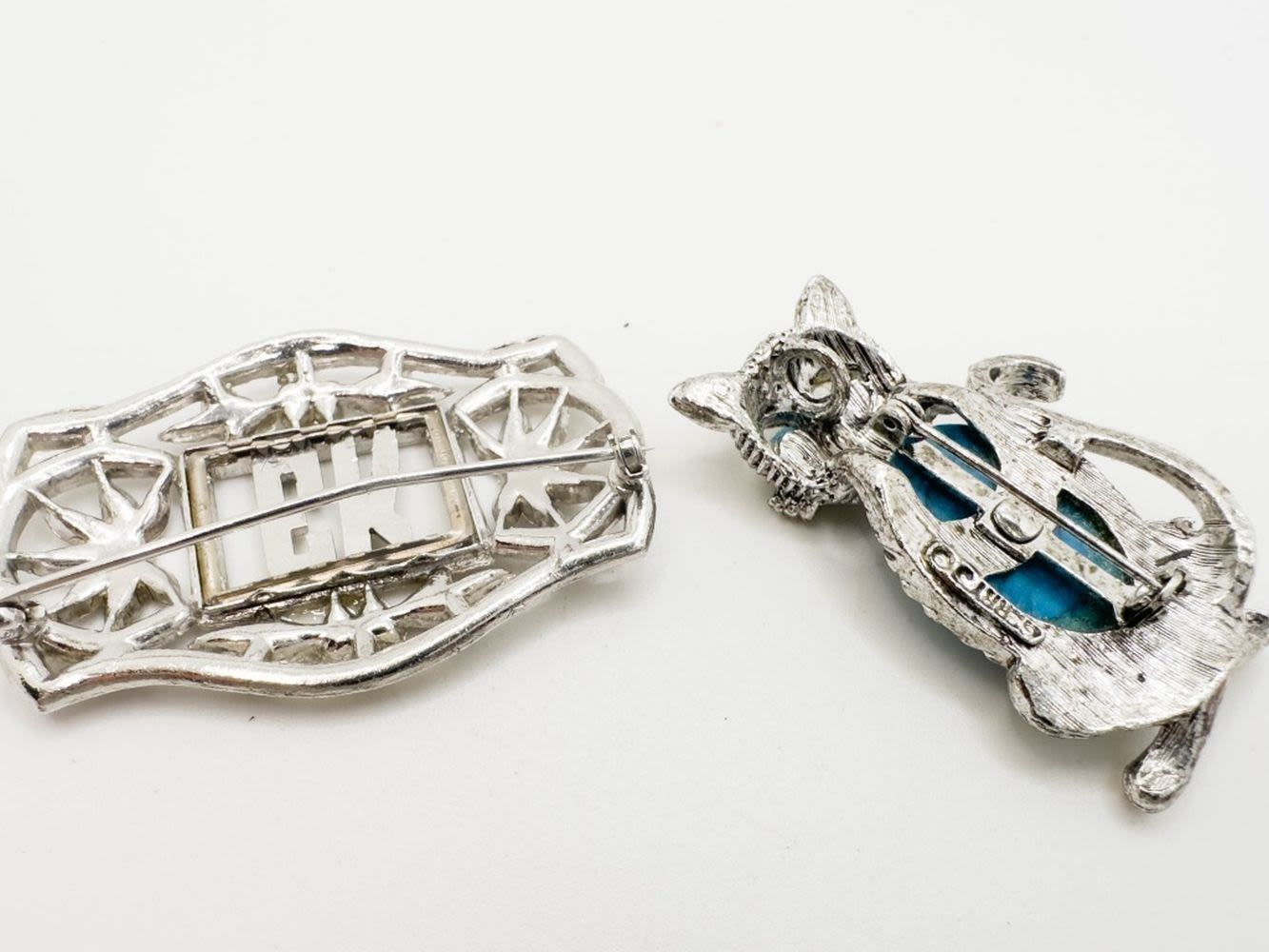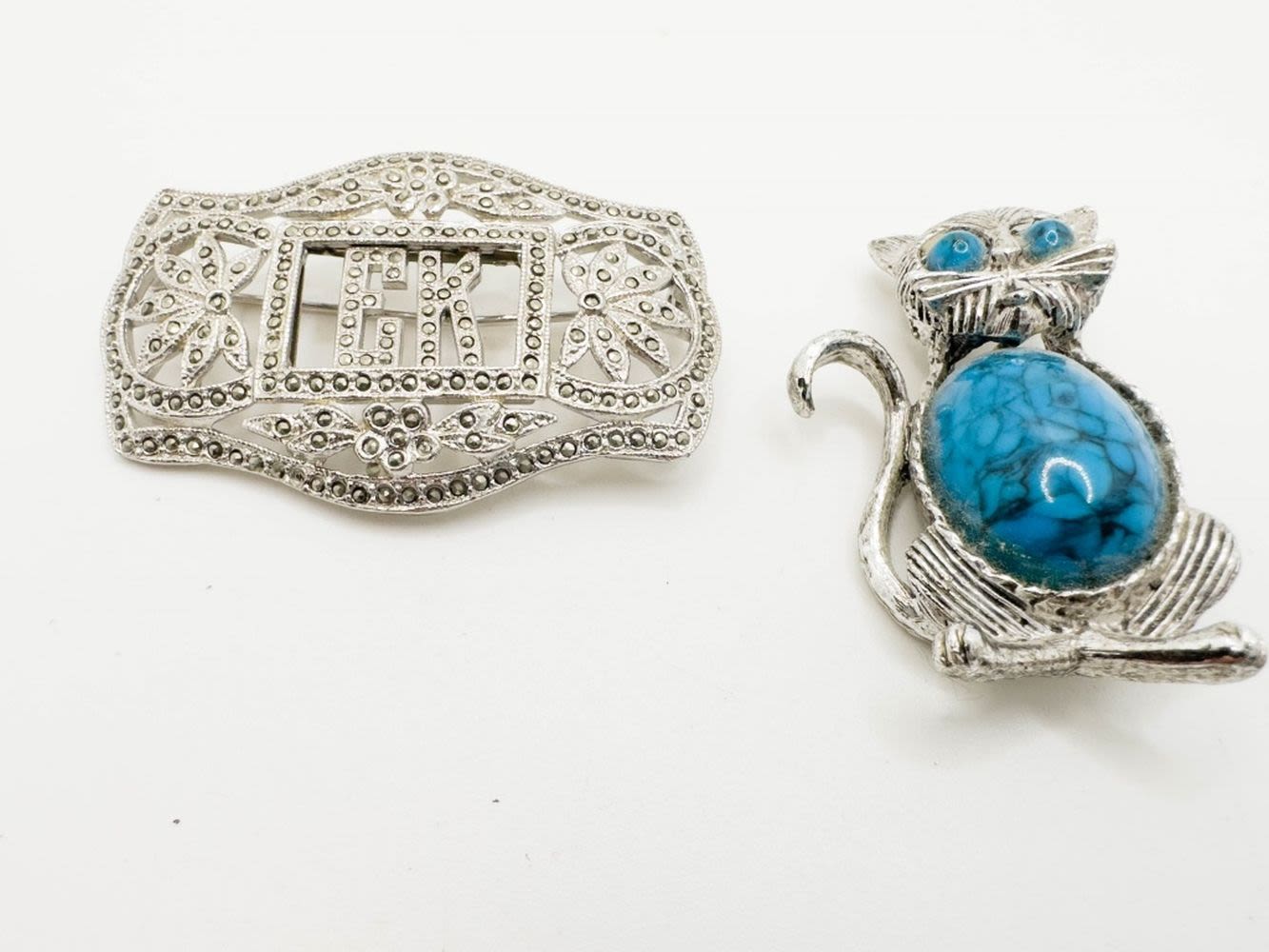TURQUISE COLOR LARGE STONE BELLY CAT BROOCH AND OTHER STONE BROOCH