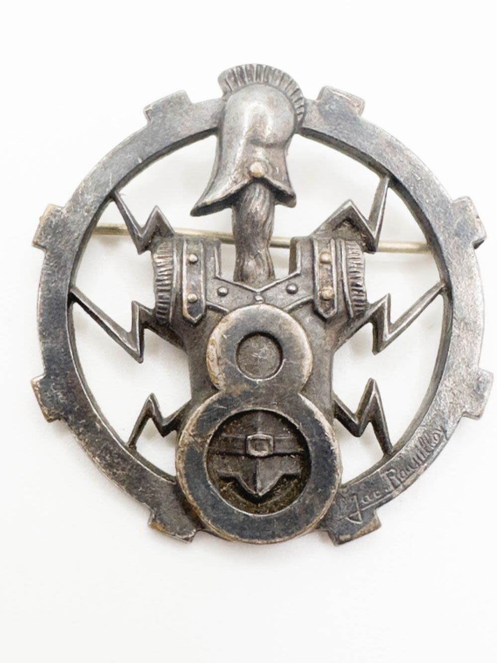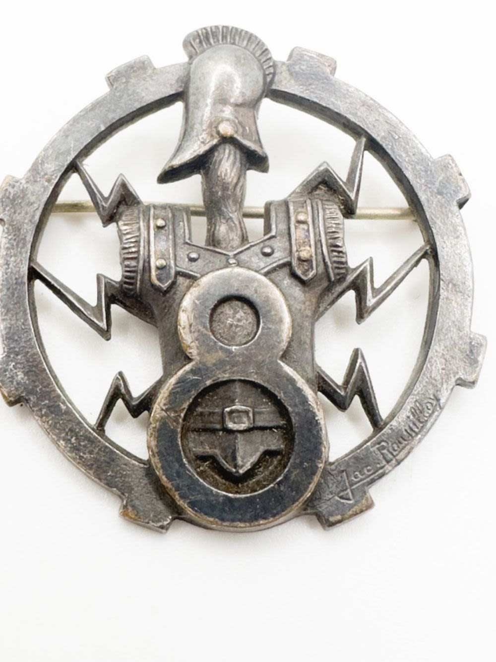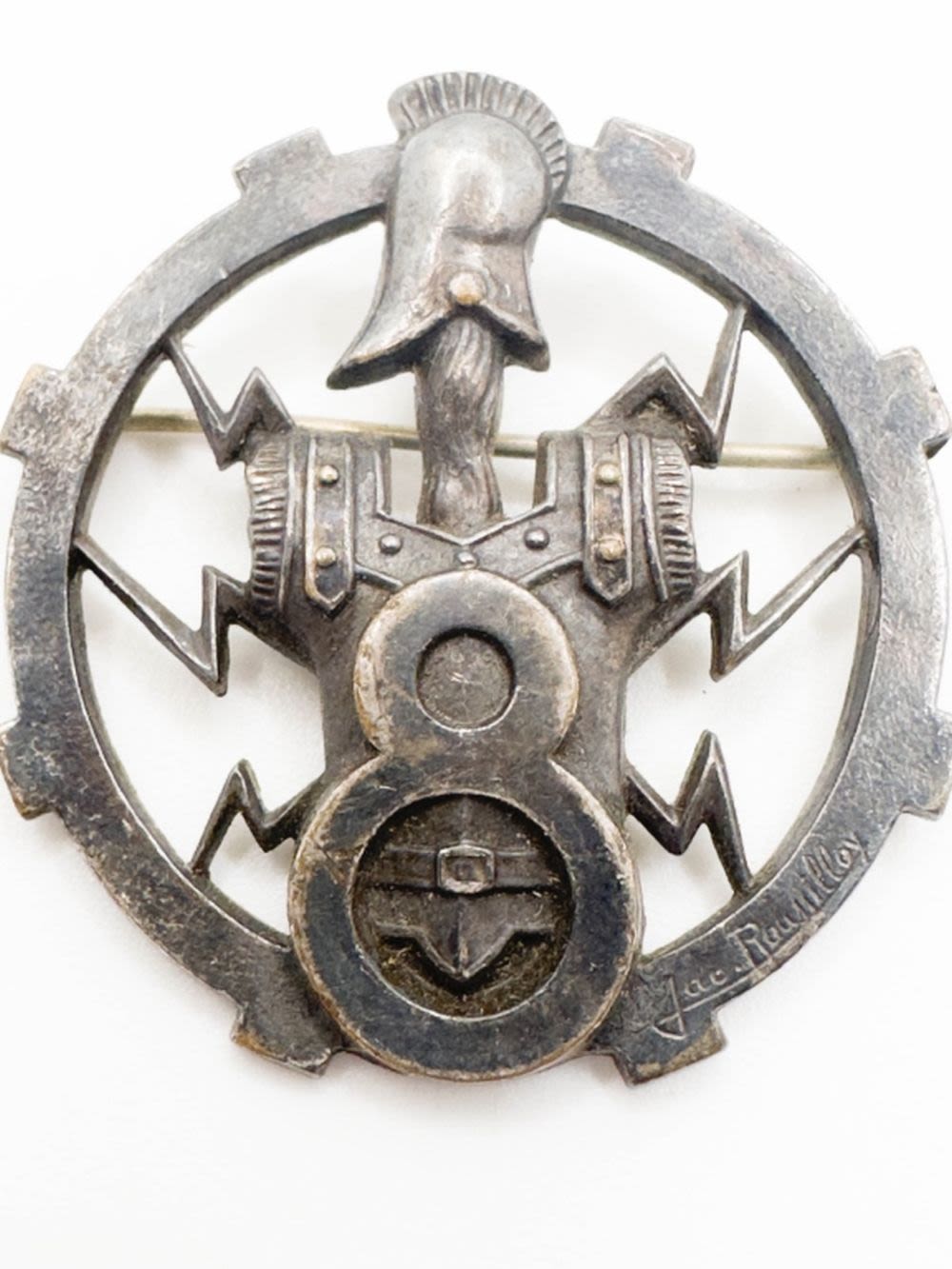 FRENCH DESIGNER ARTHRUS BERTRAND C CLASP MEDALLION BROOCH , ANTIQUE? PARIS , SIGNED , KNIGHT ARMOR, NAUTICAL ANCHOR , RARE FIND !