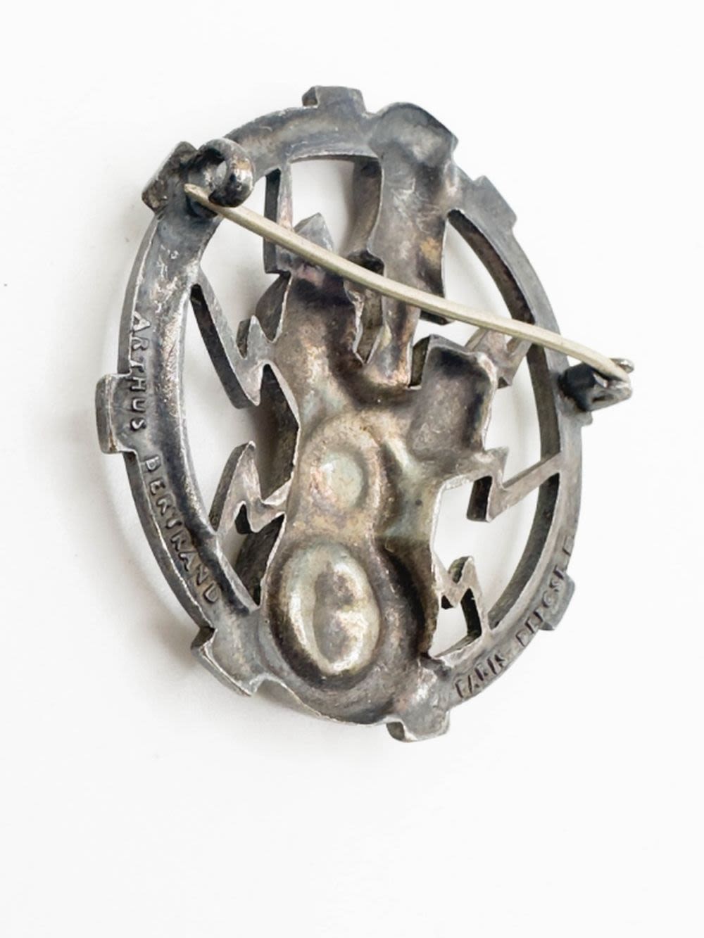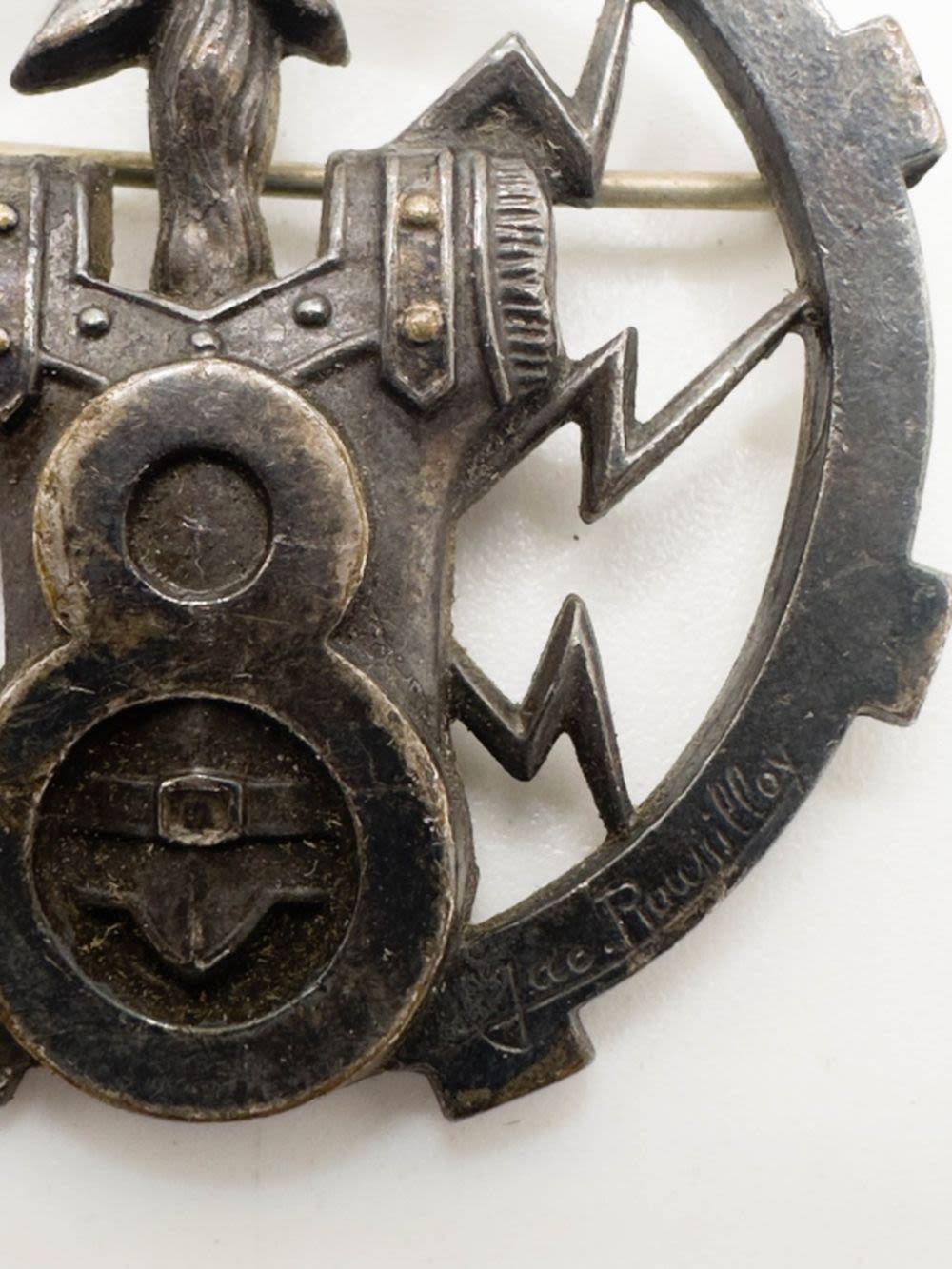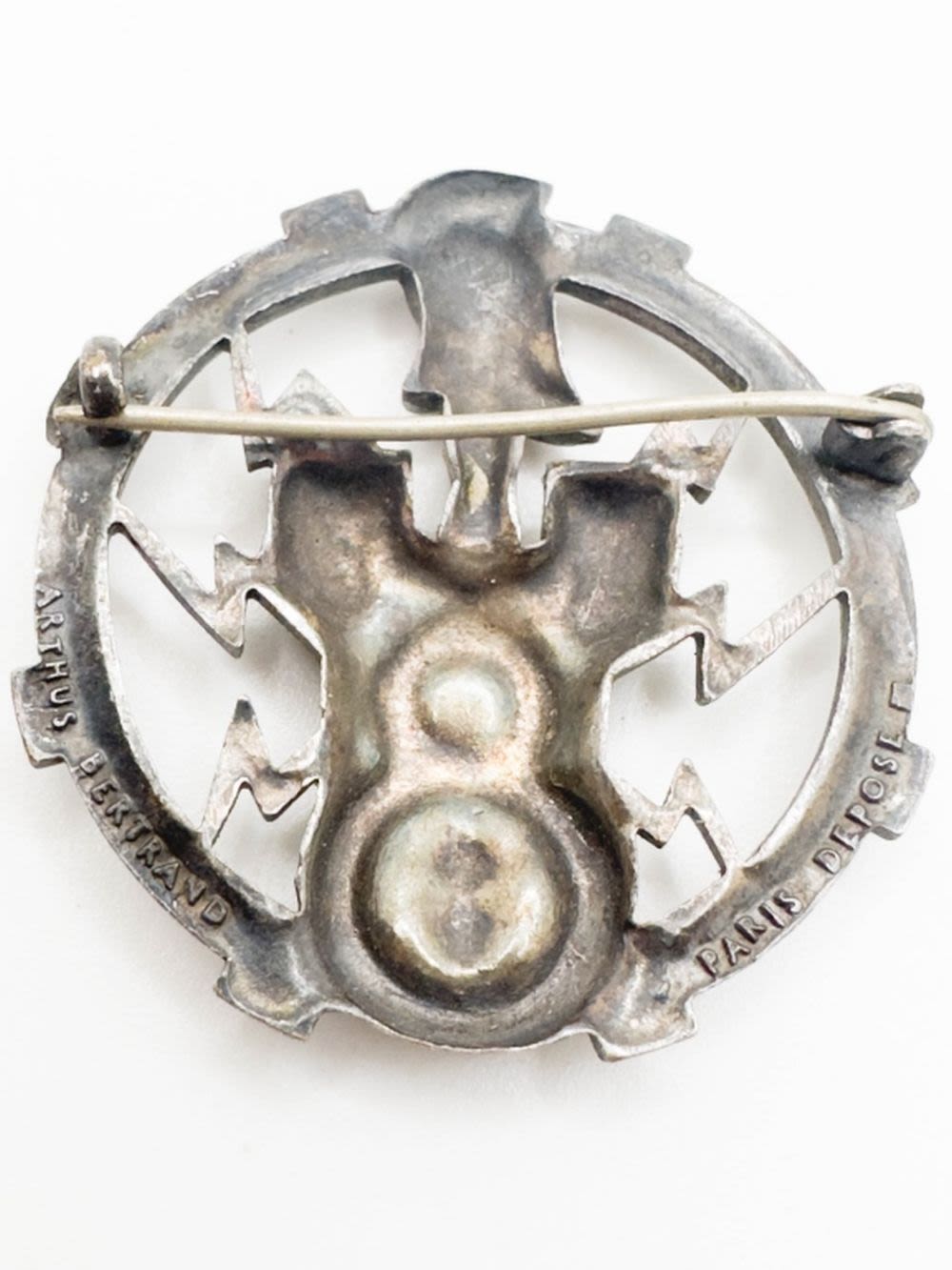 FRENCH DESIGNER ARTHRUS BERTRAND C CLASP MEDALLION BROOCH , ANTIQUE? PARIS , SIGNED , KNIGHT ARMOR, NAUTICAL ANCHOR , RARE FIND !