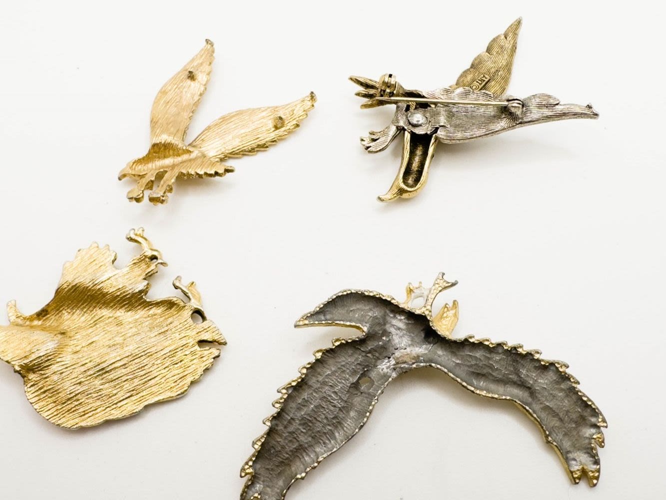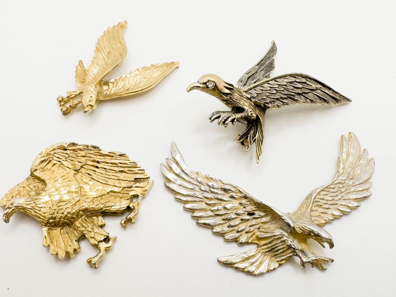 ART SIGNED EAGLE BROOCH AND OTHER EAGLES PENDANTS