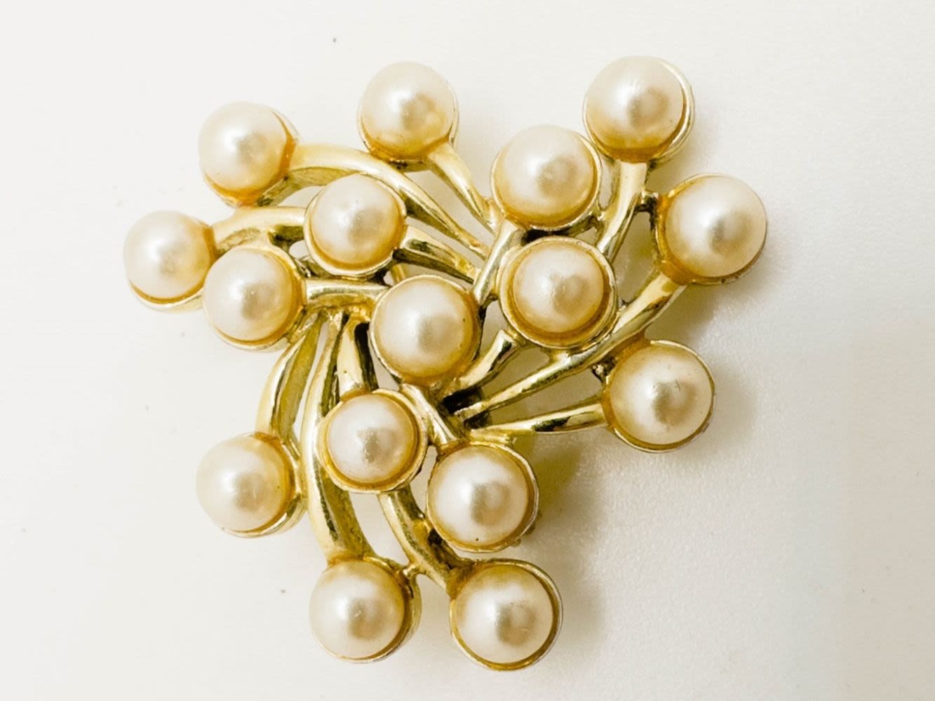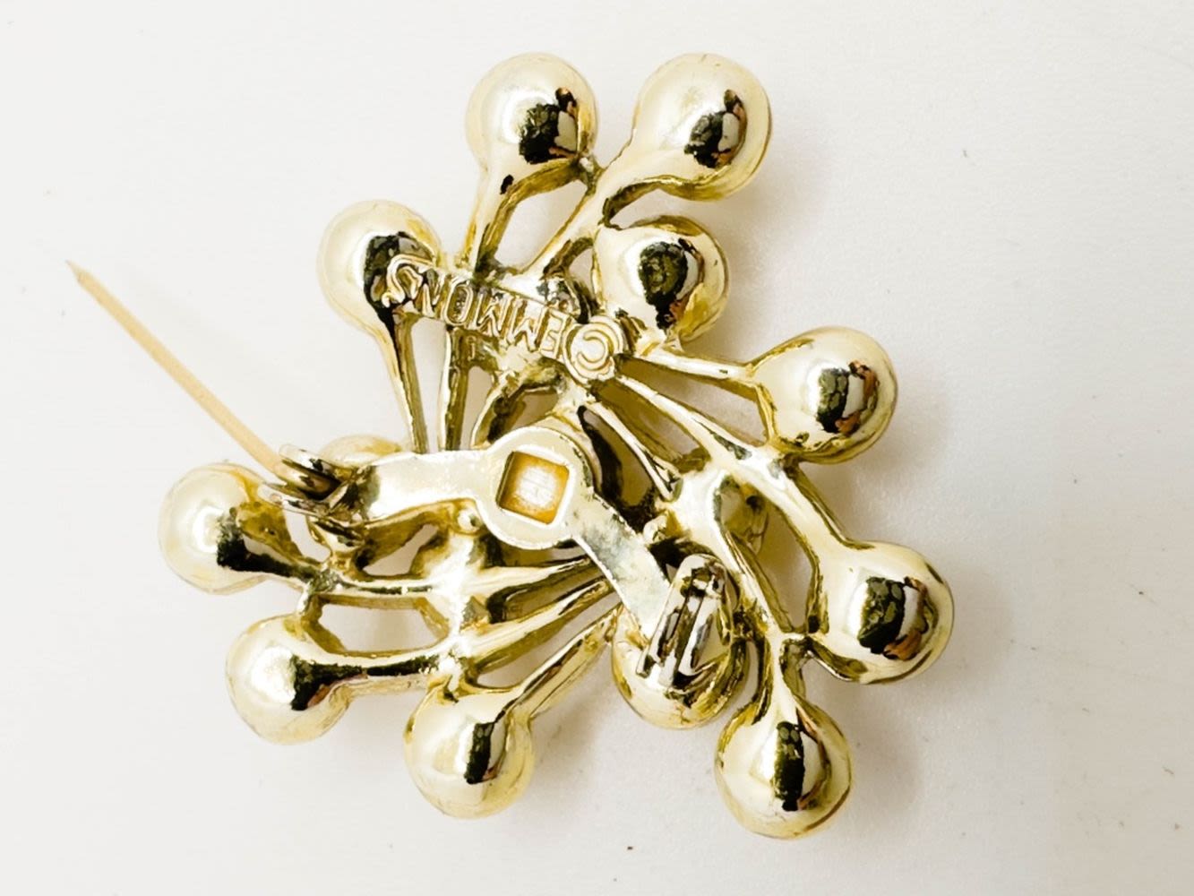 BEAUTIFUL VINTAGE EMMONS SIGNED BROOCH WITH FAUX PEARLS ON GOLD TONE