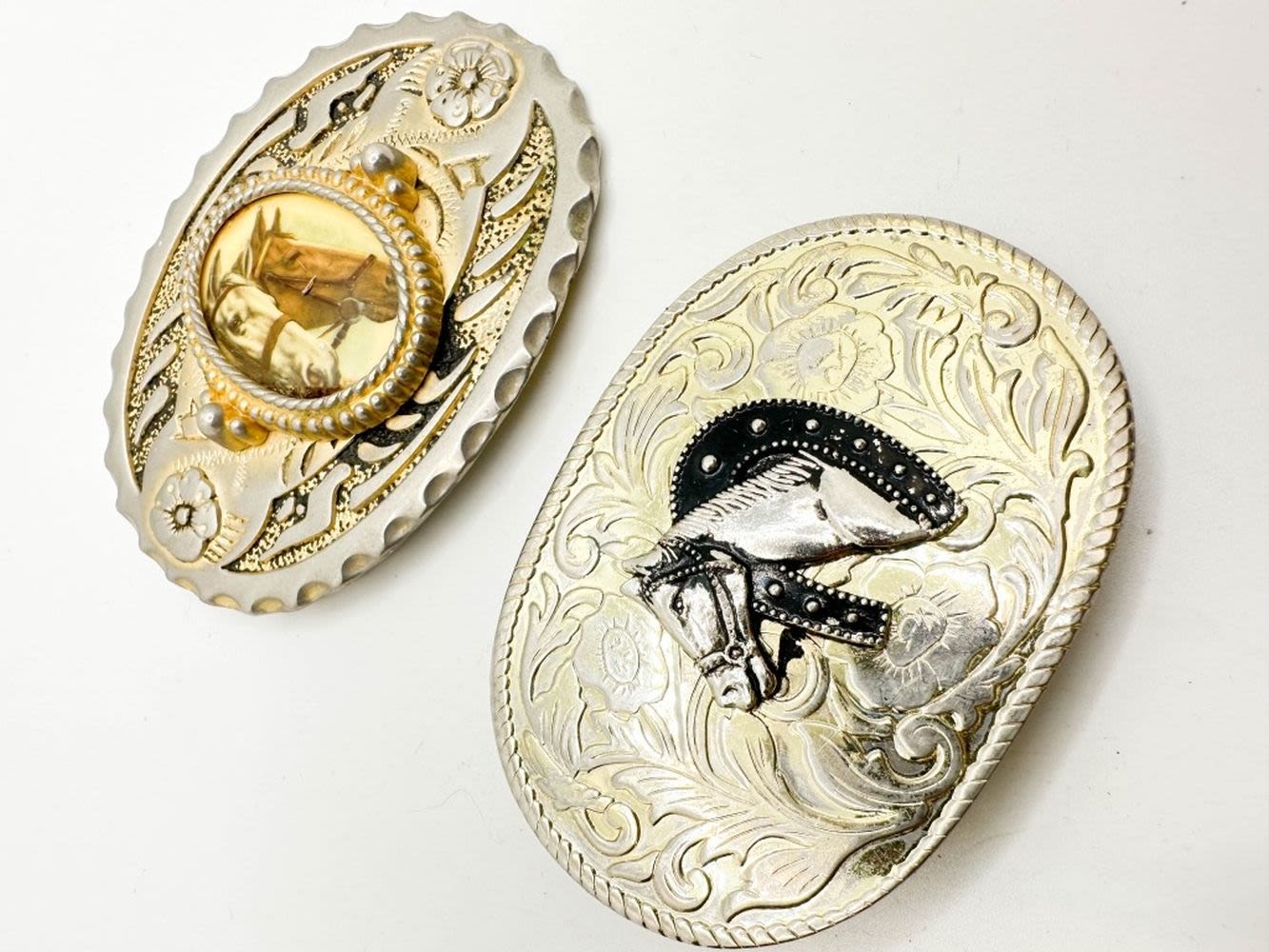 HORSE BELT BUCKLES, 2 WITH HORSE DESIGNS