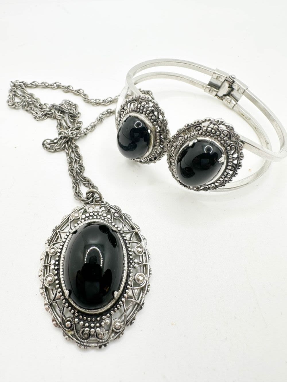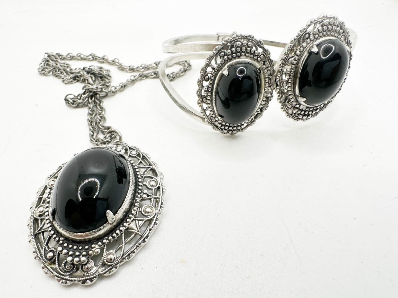 LARGE BLACK STONE MATCHING SET NECKLACE AND EARRINGS