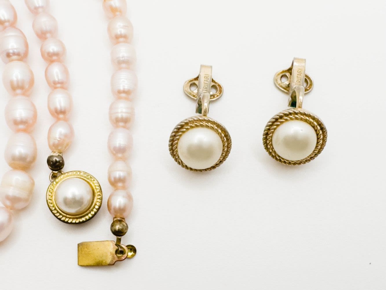 TRIFARI CROWN EARRINGS SET AND OTHER VINTAGE NECKLACE
