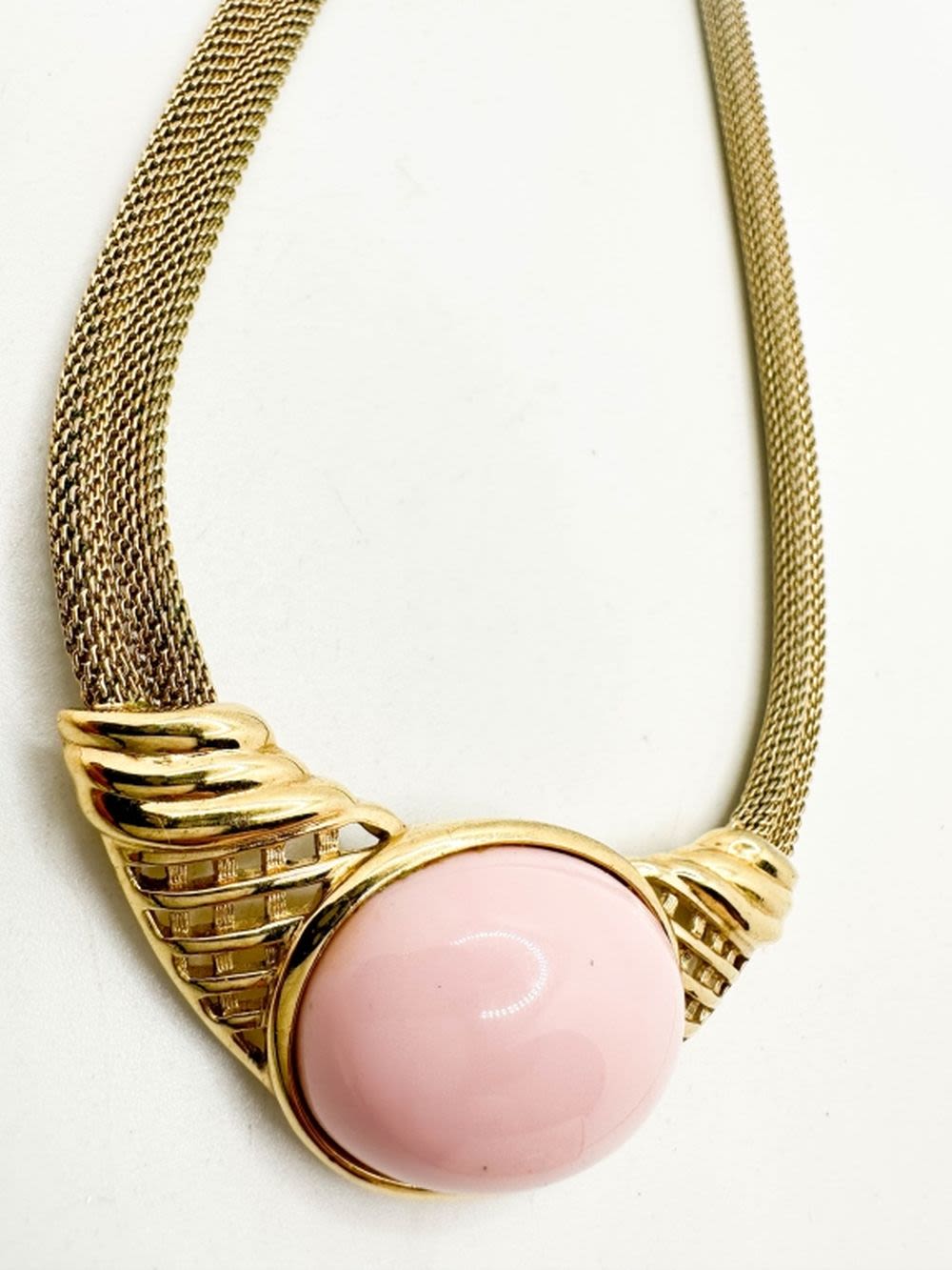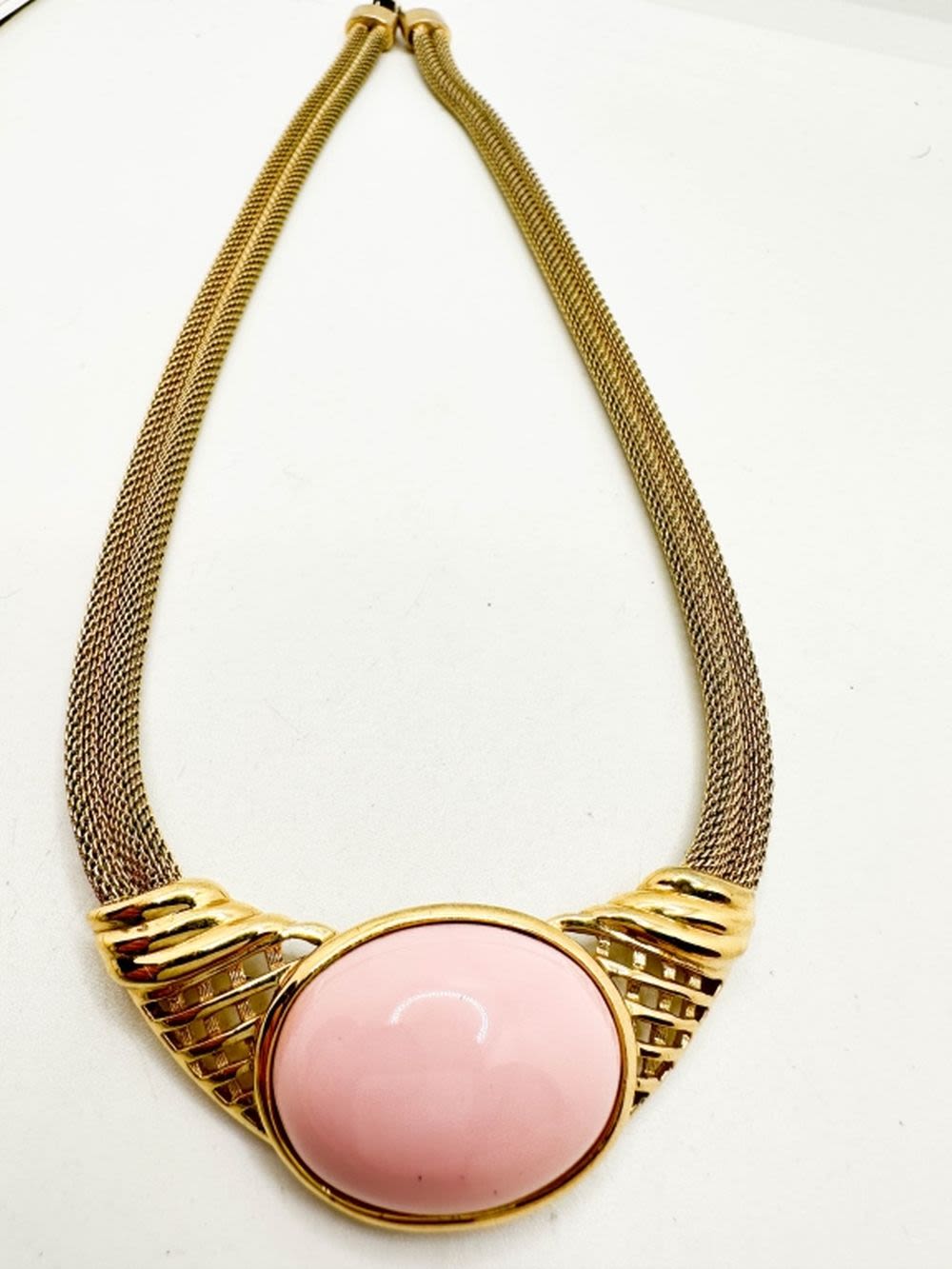TRIFARI PINK STONE NECKLACE SIGNED TRIFARI